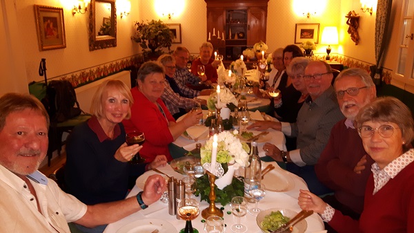 Die Wanderung ging von Oberdollendorf durch das Mühlental zum Kloster Heisterbach. Trotz drohendem Regen nahmen wir zurück einen etwas längeren Weg. Mit den ersten Regentropfen retteten wir uns auf die überdachte Terasse des Weingutes Sülz. Hier sahen wir bei einem Glas Wein oder einer Tasse Kaffee gemütlich dem Regen zu, der wie aus Eimern vom Himmel kam. Gegen 16 Uhr zogen wir dann um ins Weinhaus Lichtenberg. Die andere Gruppe war auch schon eingetroffen und es wurde ein schöner Nachmittag bei gutem Wein und gutem Essen.