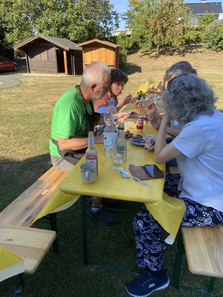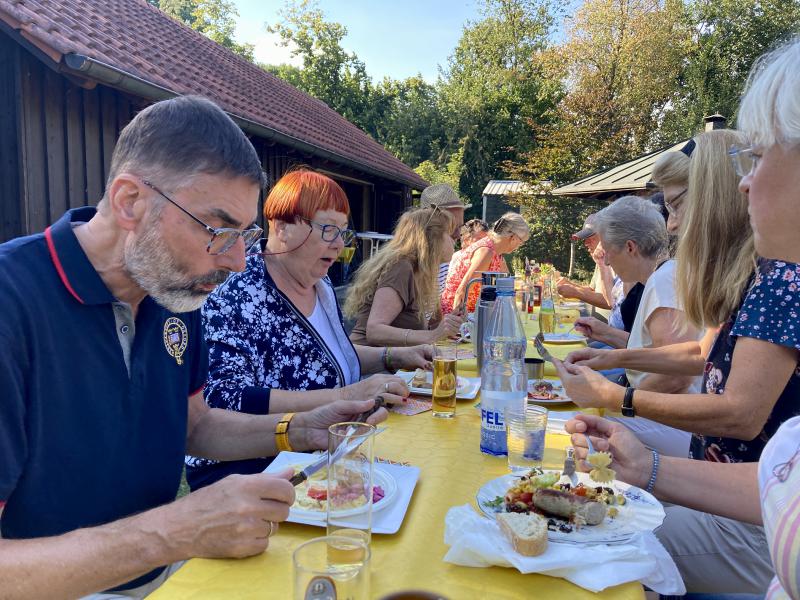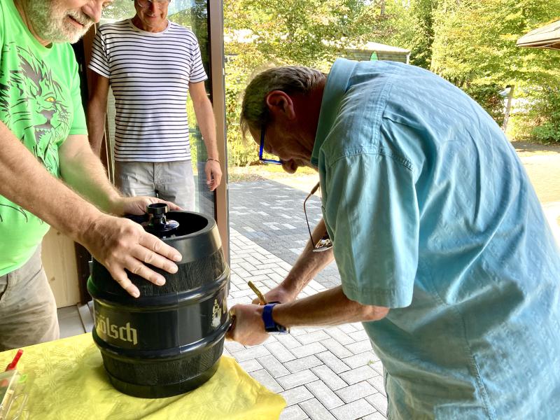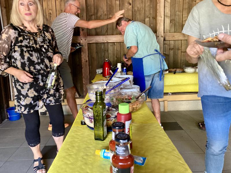 2. September, 15:30 Uhr: Die Teilnehmer des diesjährigen Sommerfestes trudeln auf dem Pützemichplatz ein……...und mit ihnen leckere Salate, Baguettes, Dips und Kräuterbutter, feinste Desserts und verschiedenste Kuchen. Altbewährt und professionell gaben Christoph und Wolfgang am Grill wieder alles, um uns mit bestens zubereitetem Grillgut zu versorgen. Zu Trinken hatten wir neben einer Bierfass-Spende von Brigitte so einiges, um bei schönstem Sommerwetter den Durst zu löschen. Schön, dass unsere neuen Mitglieder ebenso dabei waren, wie 3 süße Enkelkinder. Als dann kurz vor Schluss die Kühle langsam nach oben kroch, wurde es noch einmal besonders lustig.
