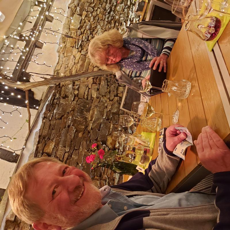 Wir machten uns dann gemeinsam auf ins Hotel, und .... Es fing an zu regnen. Gott sei Dank (Weather-Man sei Dank) erst nach der Wanderung. Nun regnete es ausgiebig, während wir das Abendessen genossen. Dann teilte sich die Gruppe auf, die einen blieben im Hotel (um lokale Spezialitäten in flüssiger Form zu genießen), Die anderen zogen durch das fechte Nass ins Dorf (um lokale Spezialitäten in flüssiger Form zu genießen). Also ein weiterer gelungener Abend.