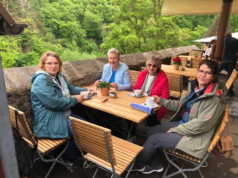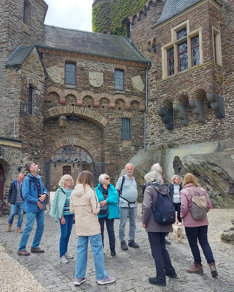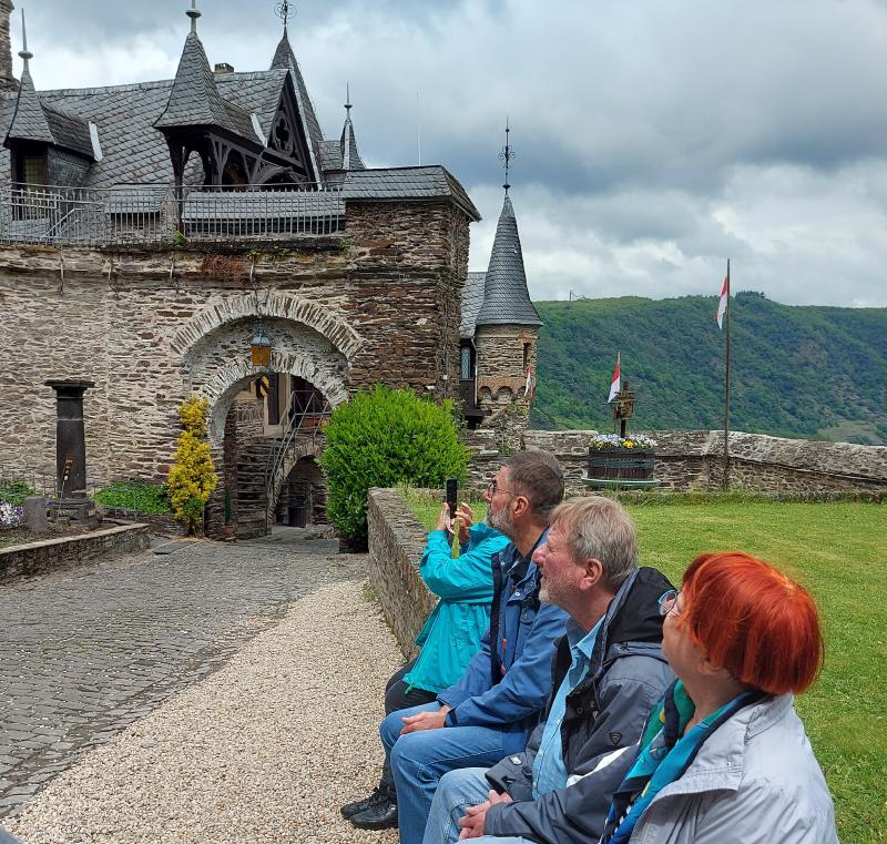 Am Freitag war Ausflugstag, das Wetter war ungewiss. Geplant waren Koblenz und Burg Eltz, es wurde dann Cochem und Burg Eltz. Ein Teil fuhr mit den PKWs nach Burg Eltz, der andere Teil mit PKWs und der DB nach Cochem. Das Wetter war bei der Abfahrt gut und je näher wir Richtung Cochem kamen, desto dunkler wurde es. Sollte Weather-Man doch versagen? Doch es hörte auf zu regnen und wir hatten in Cochem einige schöne Stunden. Wir gingen hinauf zur Reichsburg, ein Teil ließ sich durch die Geschichte führen, ein anderen Teil ließ sich durchs Kuchenbuffet auf der Burg führen. Das war lecker und überraschenderweise günstig.