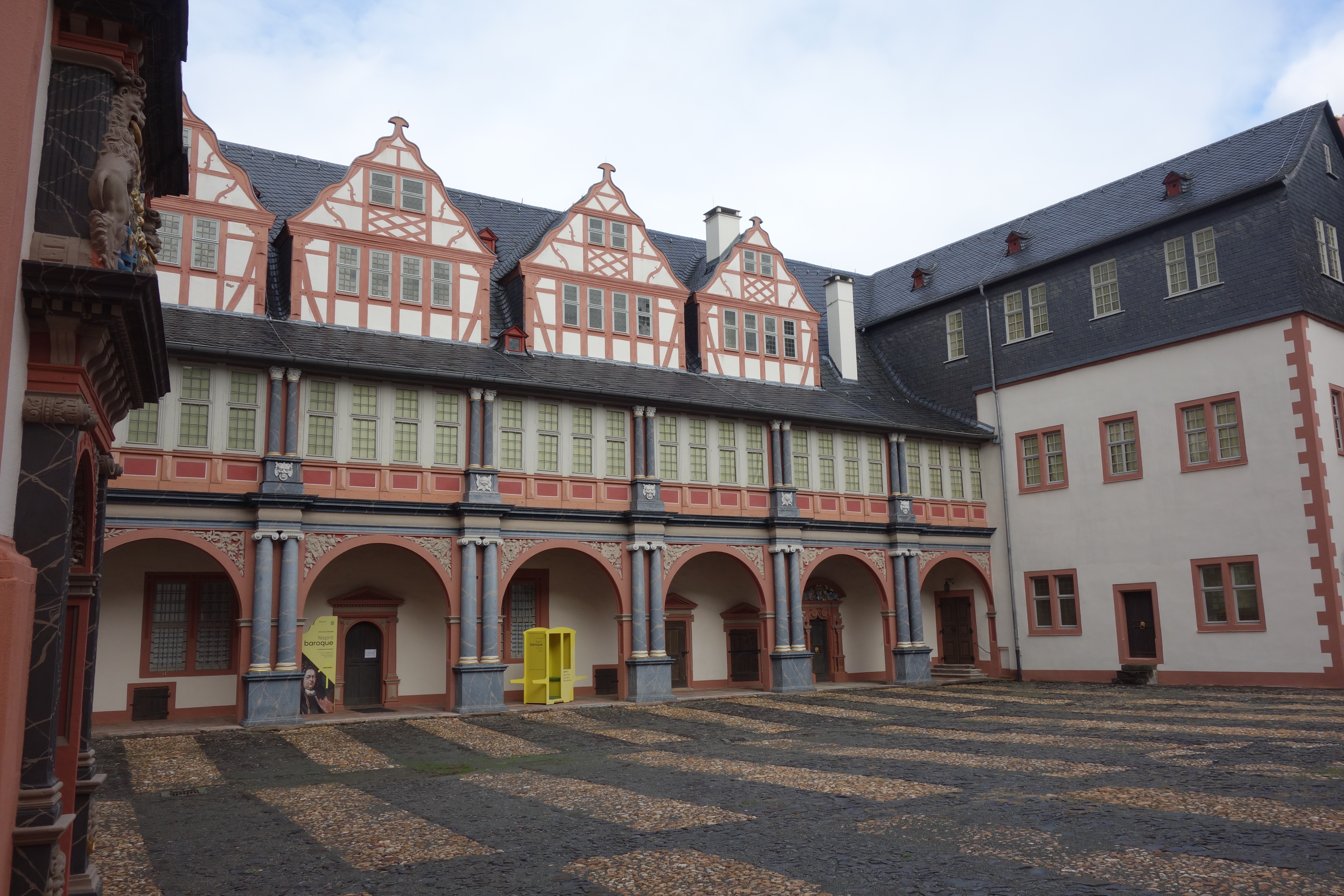Um 12 Uhr trafen wir uns in der Lobby des Hotels zur Vorbesprechung, denn um 13 Uhr holte uns schon die Stadtführerin, Frau Bartkowski, zu unserer Altstadtführung ab. Sie beschränkte sich auf den alten Kern, den Schlossberg, denn Bewegung hatten wir bei der Übung „Schirm auf – Schirm zu" auch so. Im Rahmen dieser Führung besichtigten wir die sehr interessante, im Stil des Barock erbaute Schlosskirche. Eine erwähnenswerte Besonderheit ist u.a. die unterhalb des Altares befindliche Fürstengruft, abgedeckt durch einen Teppich.