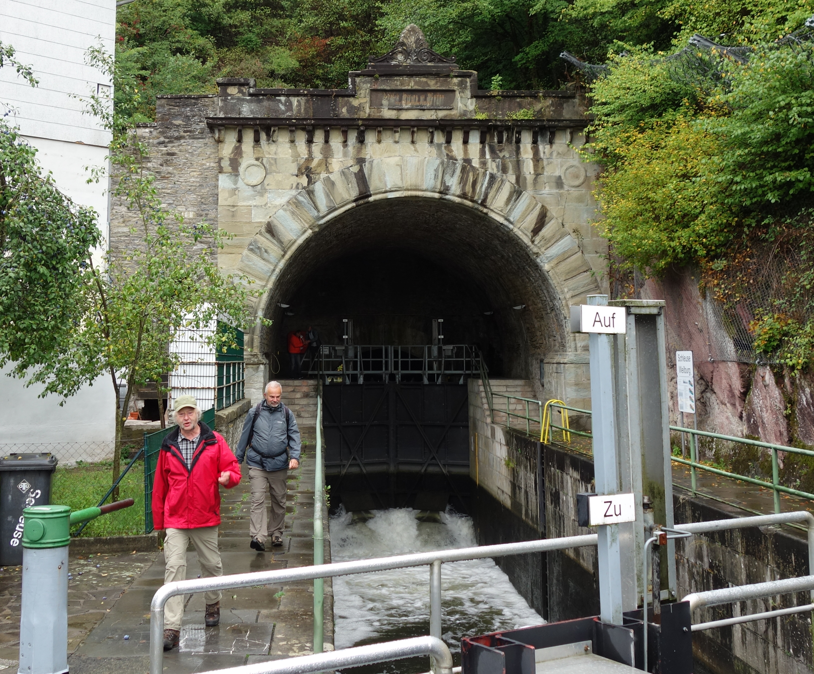 Freitag war Wandertag, der mit einer Busfahrt nach Waldhausen begann. Der Weg führte von dort zur Lahn hinab und am Fluss entlang. Eine Einkehr in eine Pizzeria entschädigte für den Regen. Auf dem Rückweg klarte es auf und einige von uns waren Paddlern am Schiffstunnel beim Schleusen behilflich.