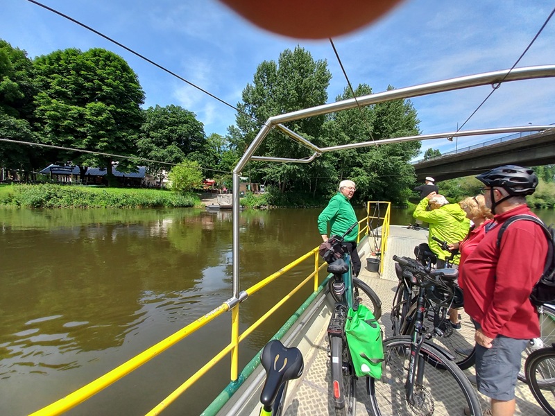Am Hostmannsteg trafen sich auf Einladung von Peter 2 Radlerinnen und 4 Radler. Nach kurzer Absprache hieß es: "Auf zur Siegfähre".