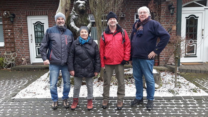 Vom Bahnhof in Hennef gingen wir an der Sieg entlang bis nach Müschmühle. Dort bogen wir ab und wanderten den Brölbach an seinem linken Ufer flussaufwärts. Überraschenderweise mussten wir eine kleine Steigung bewältigen, bevor wir über die Straßenbrücke in den Ortskern von Bröl kamen. In der einzigen Gaststätte von Bröl haben wir uns bei Essen und Kaffee aufgewärmt. Dann ging es zurück, wobei wir diesmal das rechte Brölufer wählten. Unterwegs setzte Schneefall ein, so dass die winterliche Stimmung noch intensiver wurde.