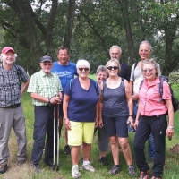 Bei idealem Wanderwetter mit leichter Bewölkung und angenehmen Temperaturen trafen sich immerhin 6 gutgelaunte Wanderer/innen und ein Hund, Monty, an der Warth. Um 10 Uhr starteten wir in 2 Fahrgemeinschaften nach Unkel zum Ausgangsort unserer Wanderung.