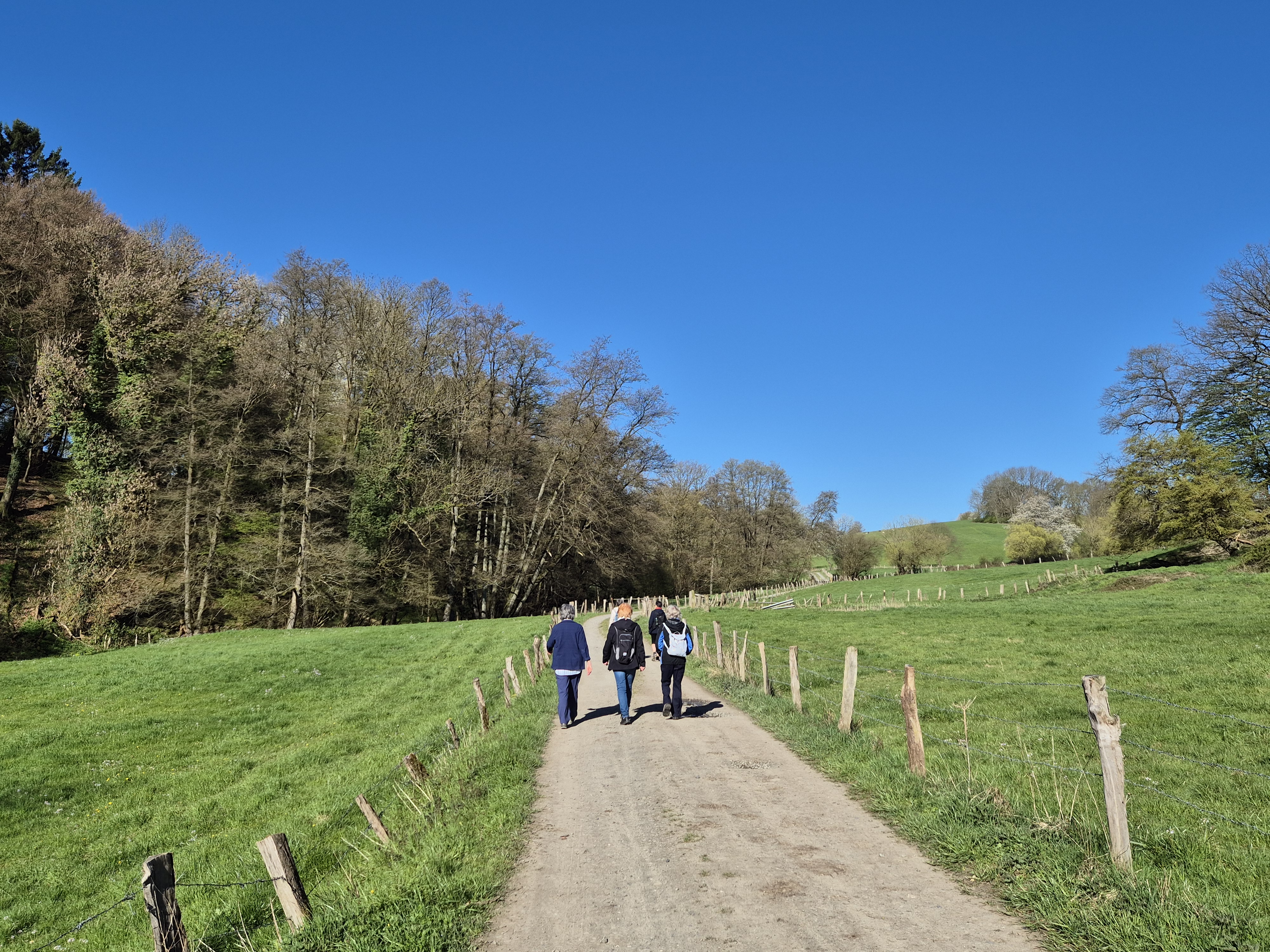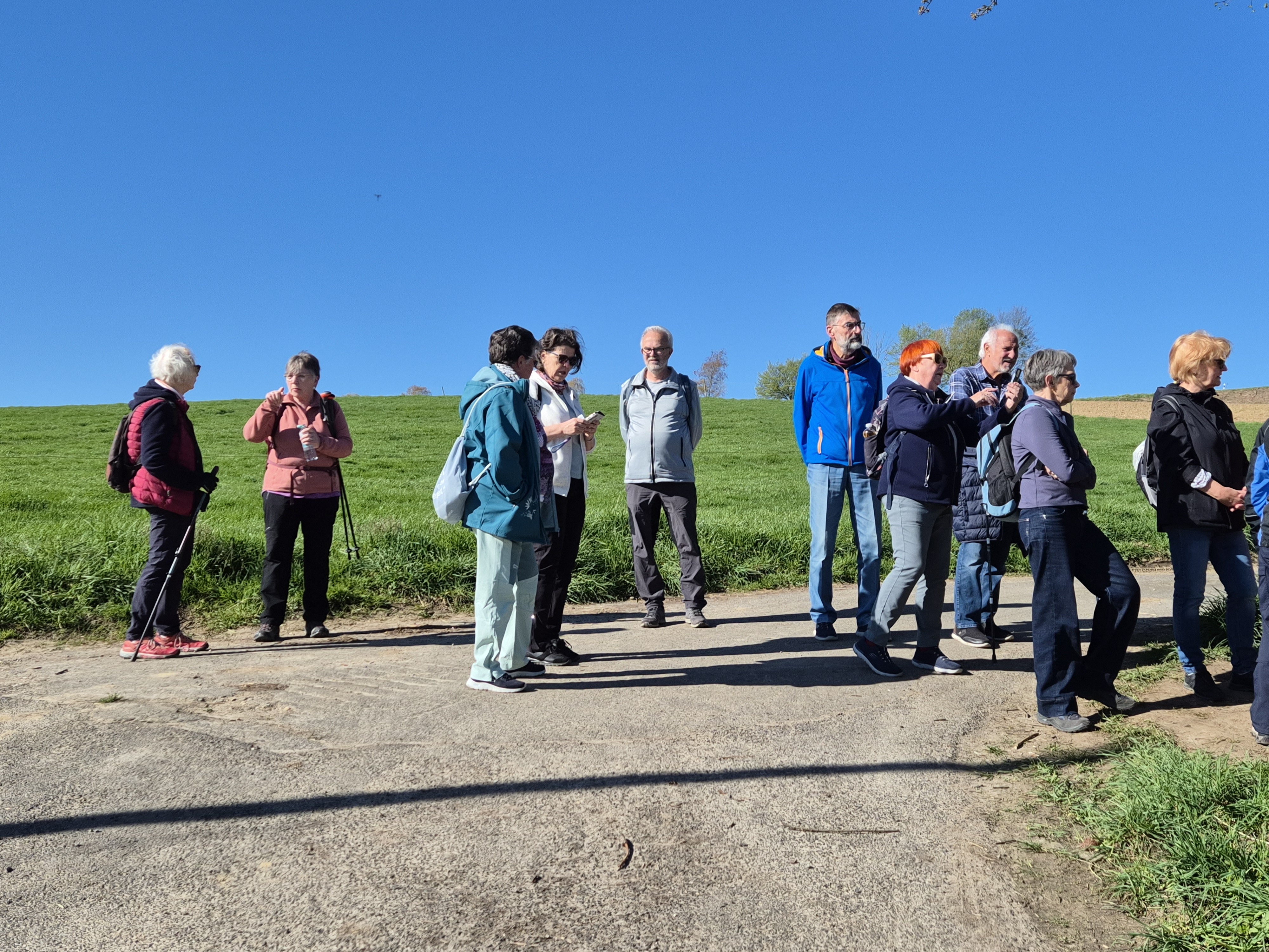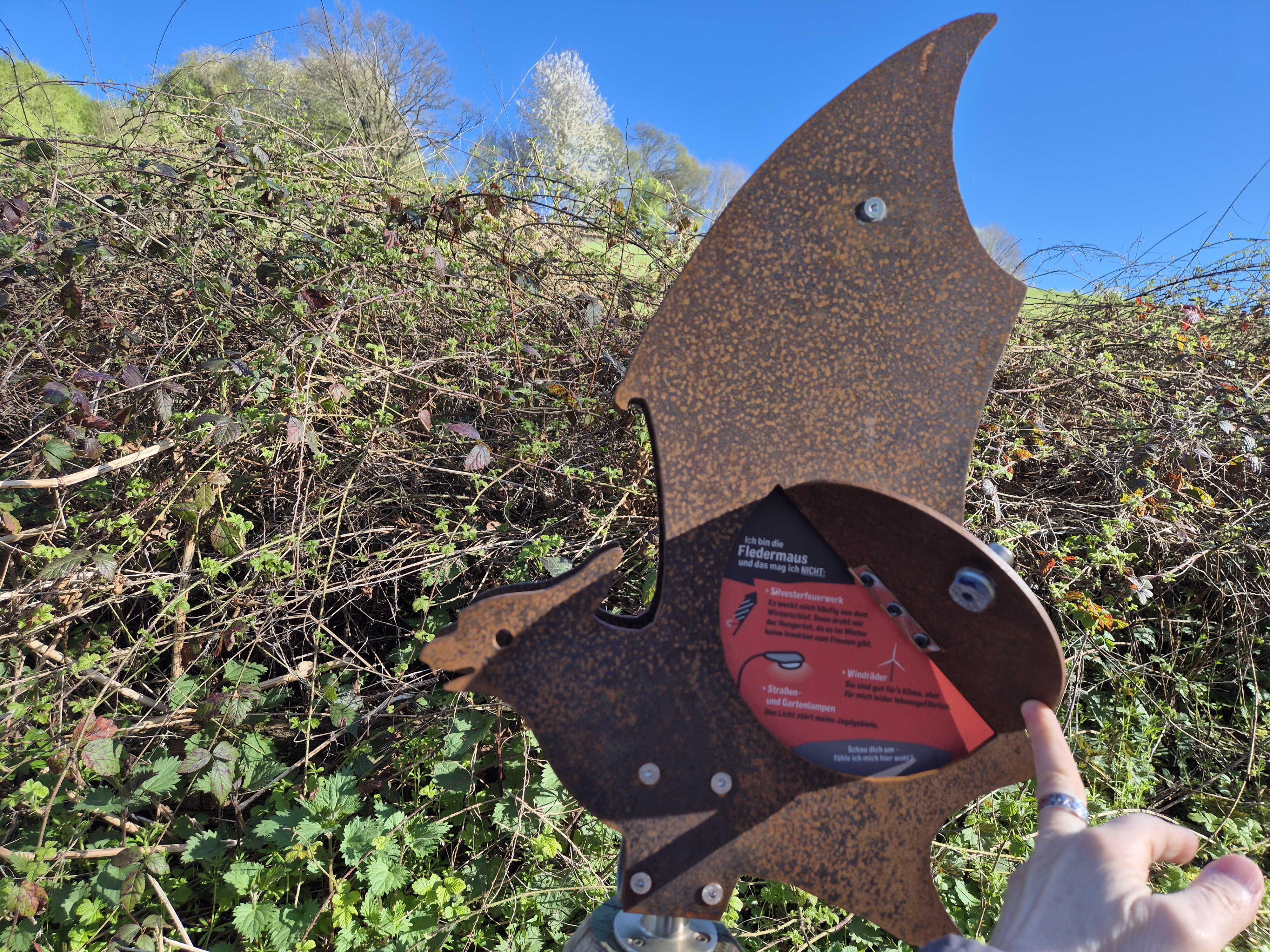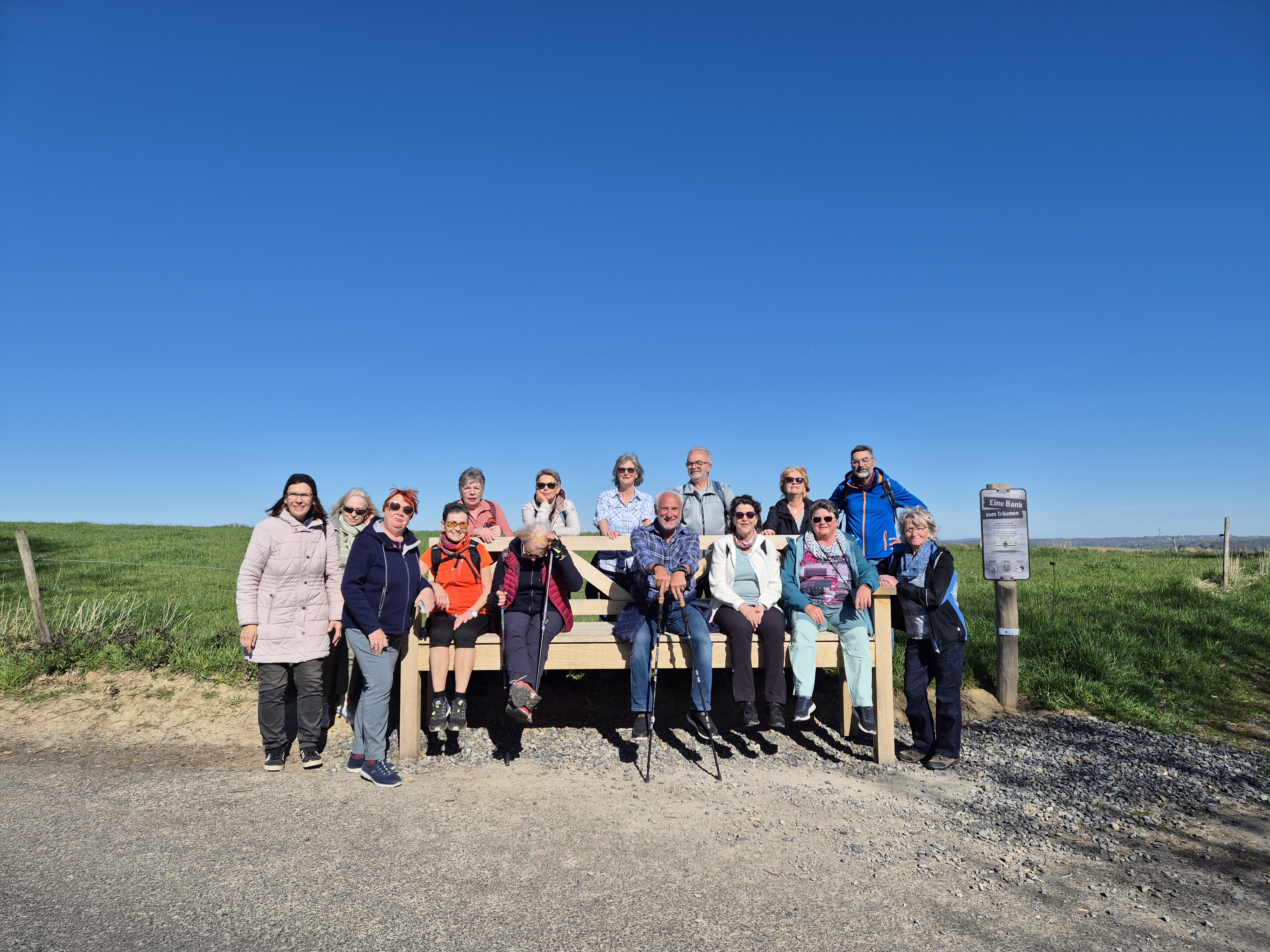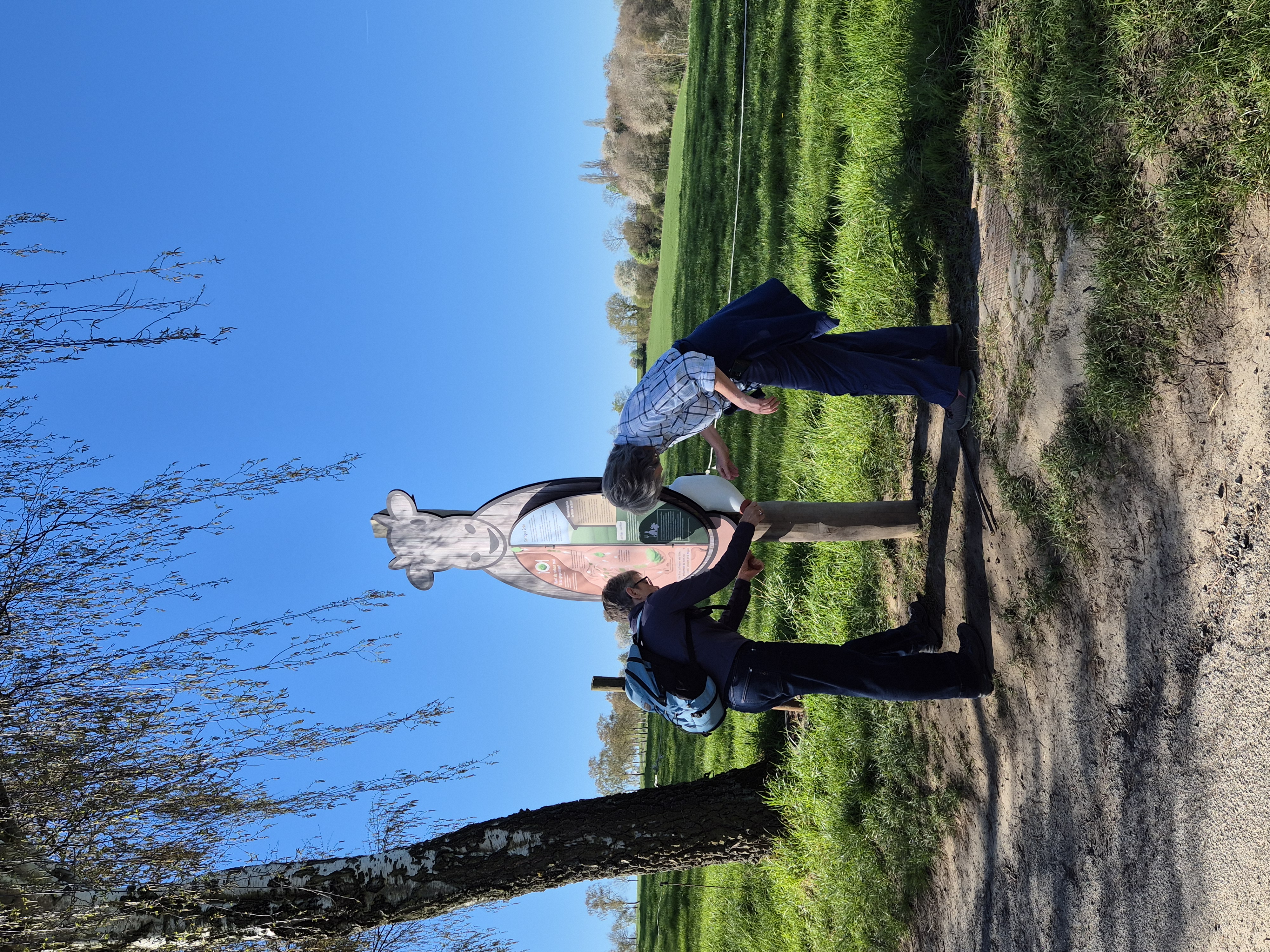 Heute, am 08.04.2026, haben wir uns um 9.30 Uhr gut gelaunt und voller Vorfreude auf eine schöne Wanderung am Gasthof "Em Wingert" getroffen. Mit der Sonne am Himmel und im Herzen sind wir fröhlich durch die wunderschöne Frühlingsnatur auf dem Familienwanderweg Muh&Mäh unterwegs gewesen. Die Hinweistafeln und etappenweise eingerichteten interaktiven Stationen waren informativ und lustig. Von den beschriebenen Tieren sahen wir nur Schafe, dazu Frauke: "Ah, Pulloverschweine" 😄😄😄. Wir haben viel gelacht und hatten mächtig Spaß miteinander.