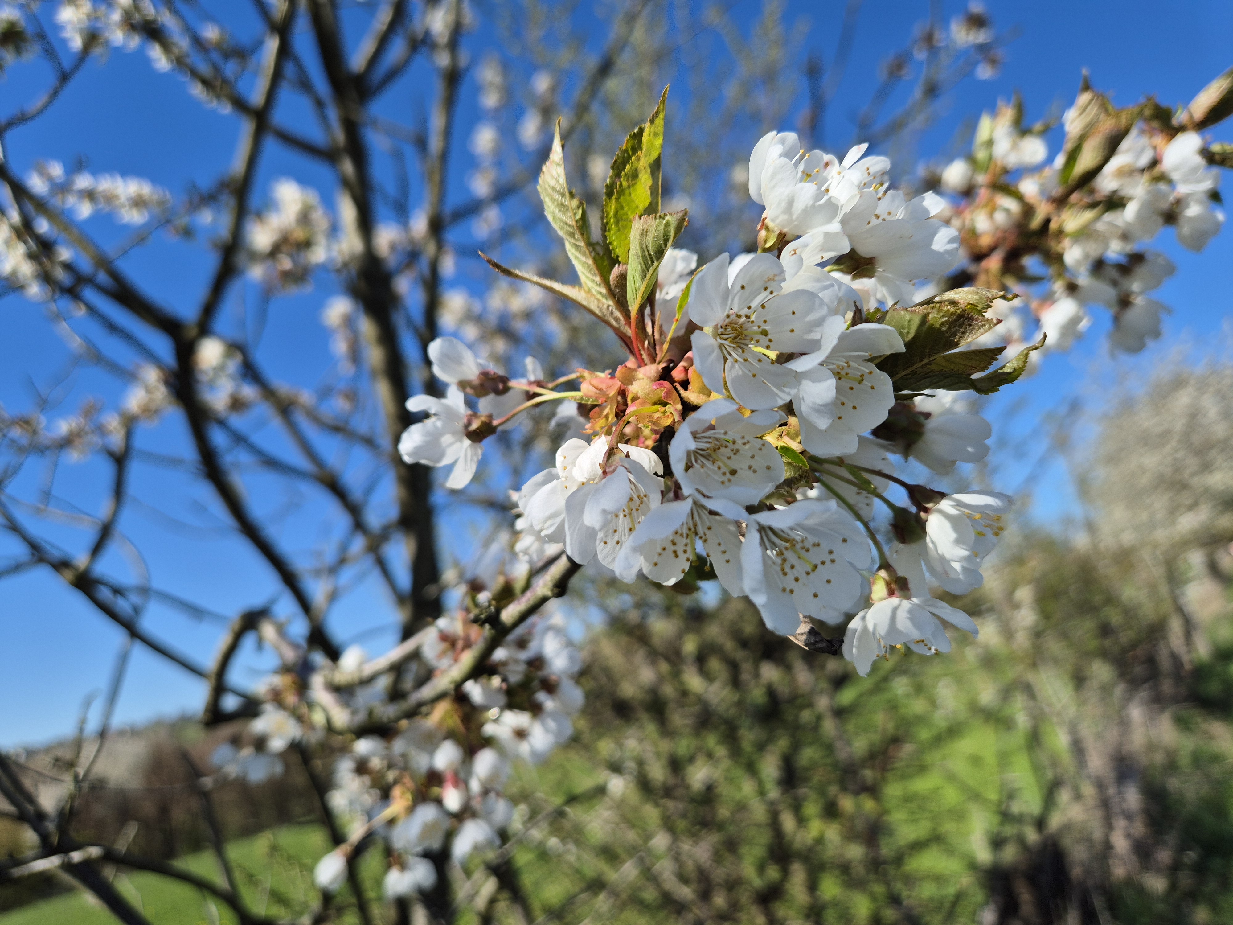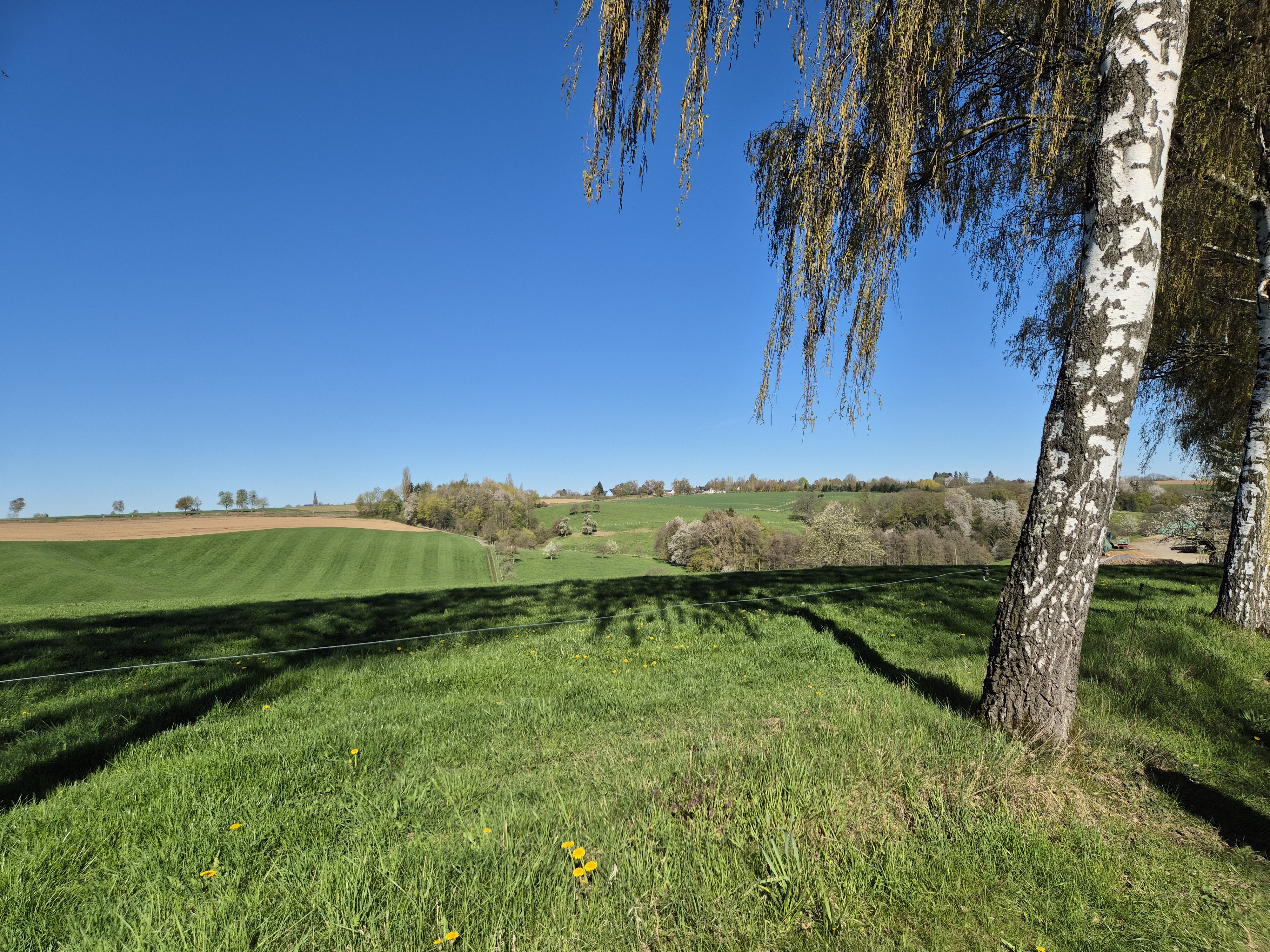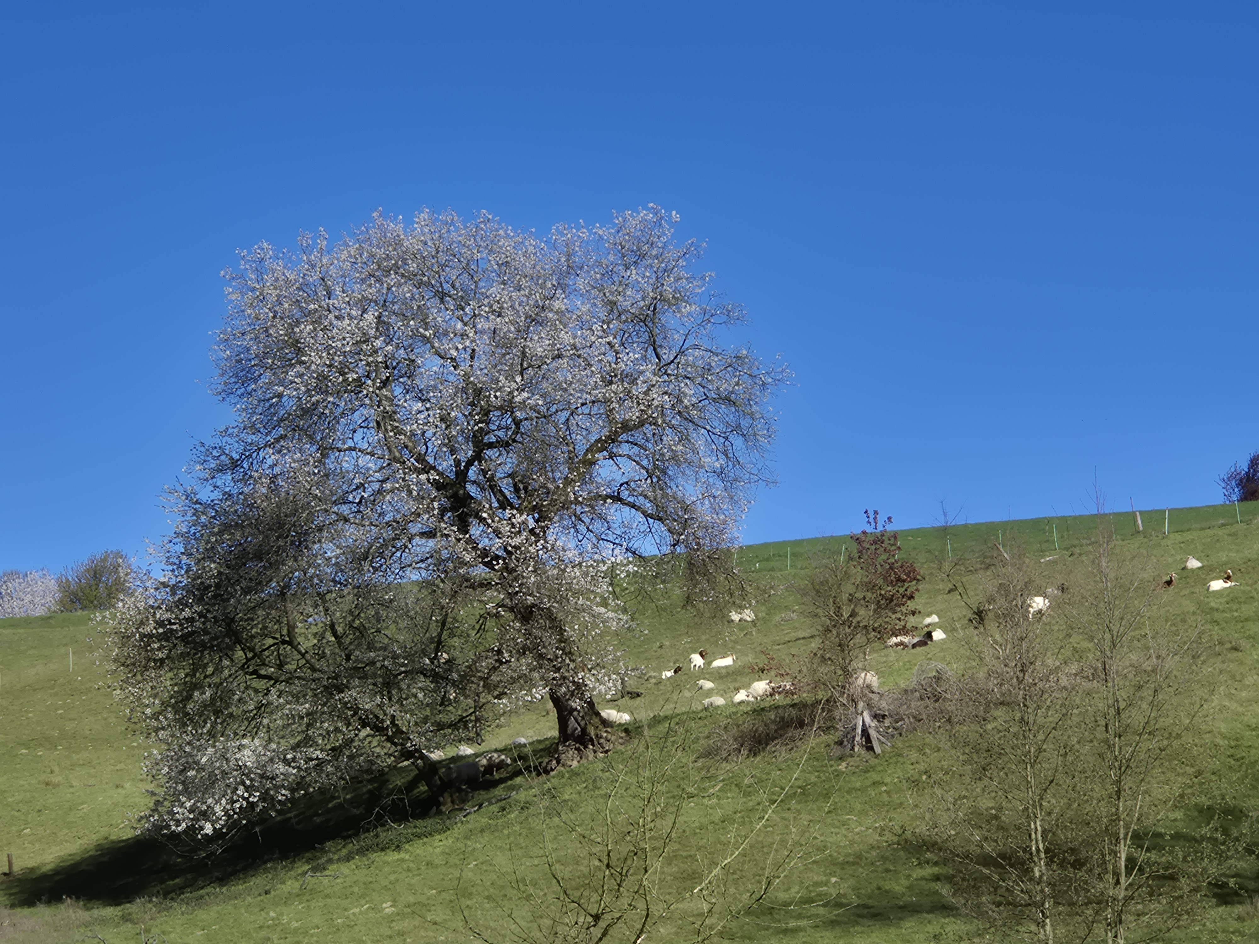 Dafür wurden wir mit tollen Ausblicken über die Höhen belohnt. Einige Bäume und Blumen blühten und ergaben mit den weiten Wiesen und Hügeln im Sonnenlicht ein wunderschönes Bild.