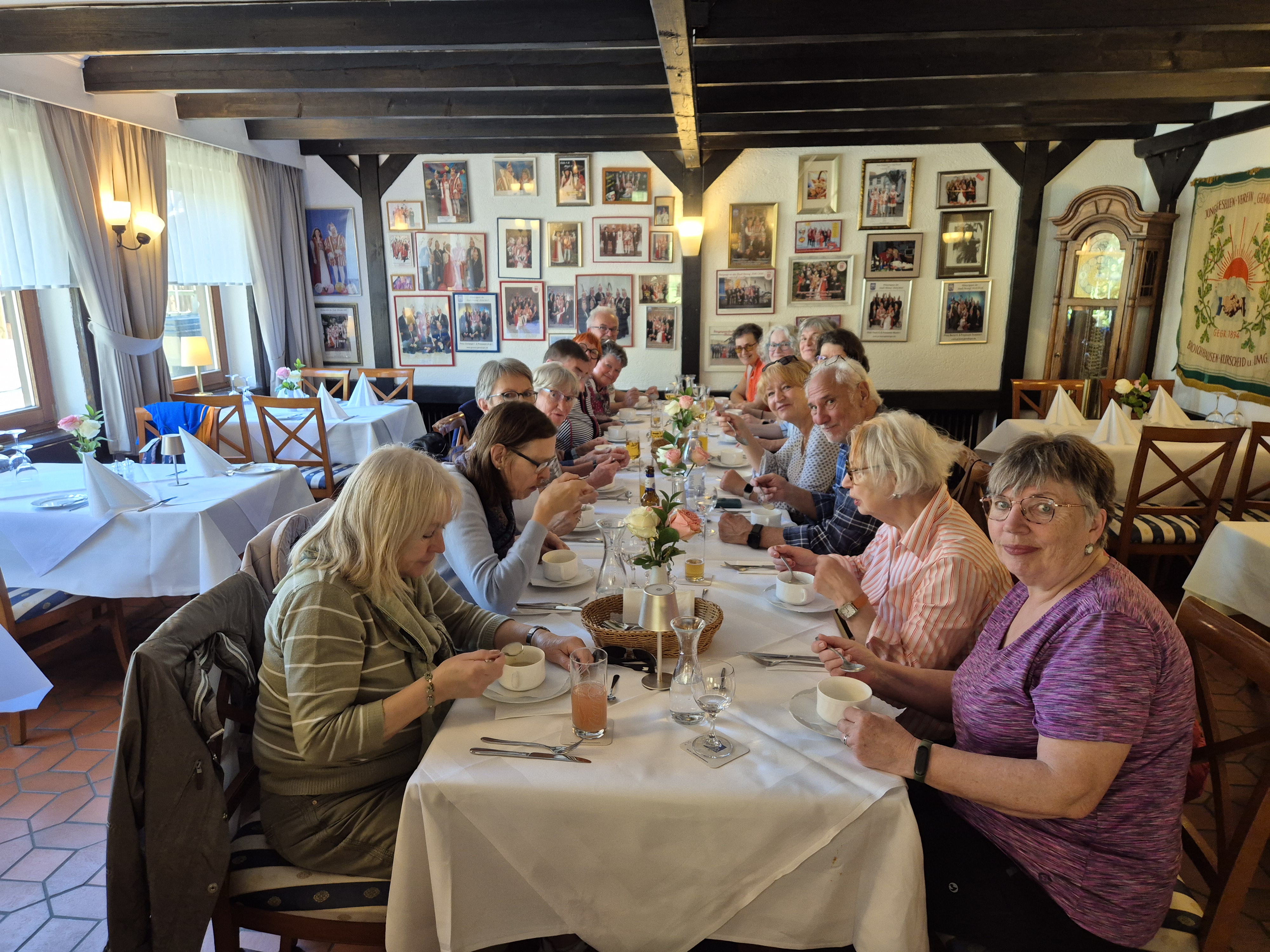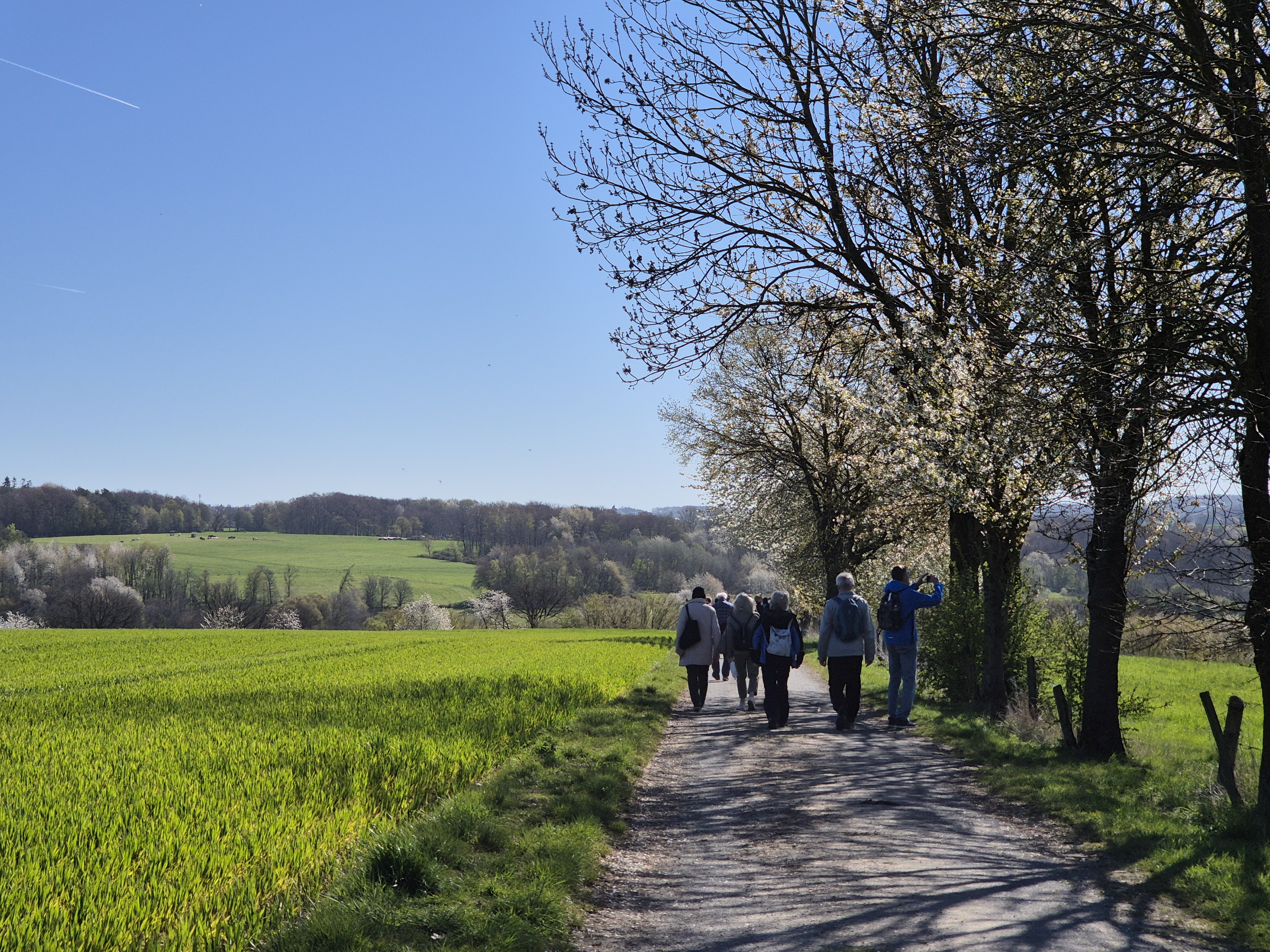 In Hofen entschieden sich alle für die Maxirunde, da es nur noch bergab ging, rein topografisch gesehen natürlich 😄. Der Rest des Weges, hinter Hofen rechts in den Wirtschaftsweg, bescherte uns nocheinmal wunderbare Blicke über die Höhen und die grünen Felder mit blühenden Bäumen. Dann ging es herunter nach Lanzenbach und im Gasthof angekommen, freuten wir uns über erfrischende Getränke und ein sehr leckeres Essen.