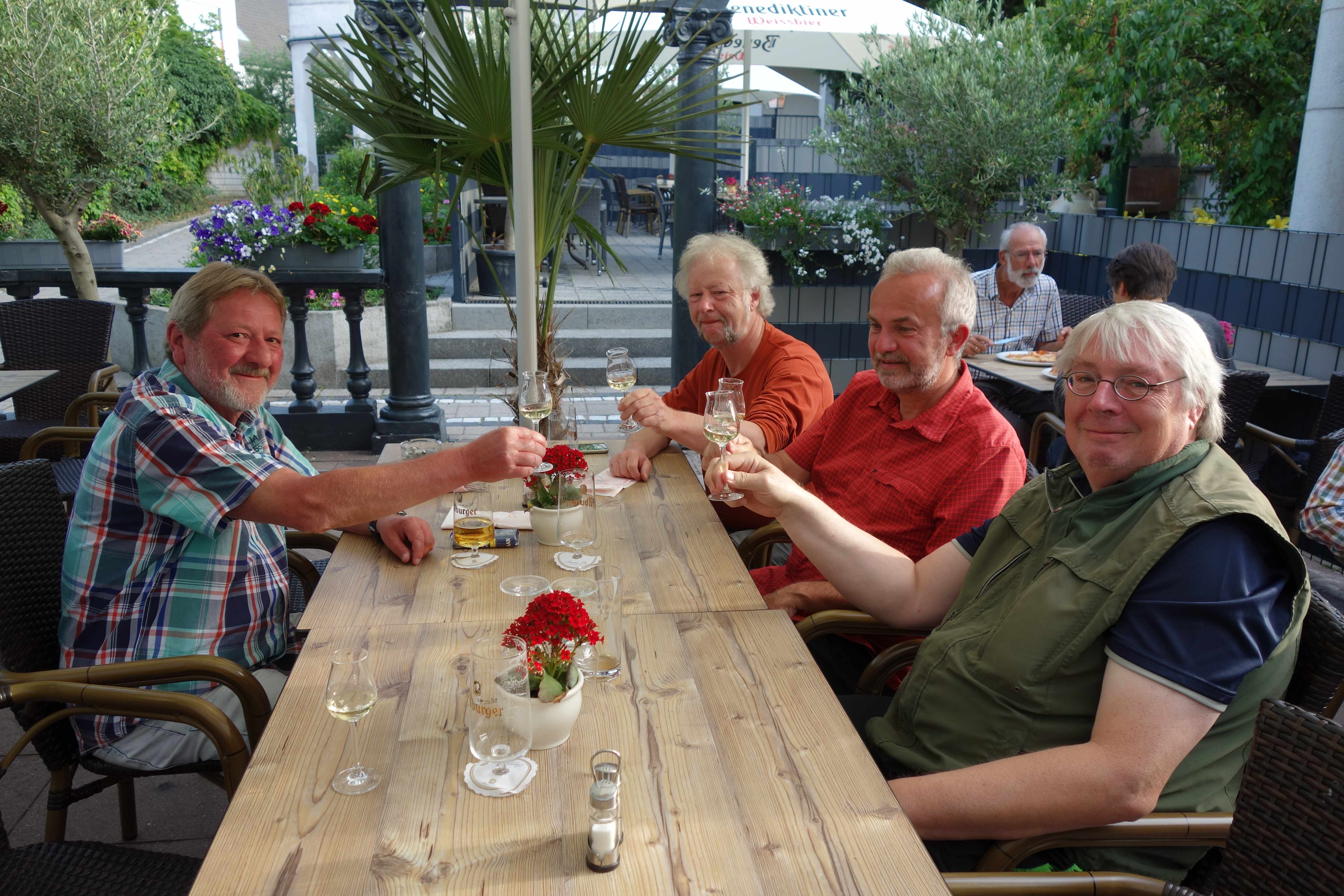 Zu den einzelnen Tagen möchte ich nicht viel schreiben, da die Bilder einen guten Überrblick über Wetter und Laune gab. Nur soviel: im Gegensatz zu den anderen Reisen gab es hier einen Männerüberschuss. So war Heike die einzige Alibi-Frau auf diesem Trip. Weiterhin haben wir gelernt, dass Männer nicht gut lesen können (wie auch beim Aufbau von Ikea-Möbeln. Während Peter mit Glück bei der Anreise in Siegen den richtigen Zug fand, nahm der Rest der Gruppe in Siegen den falschen Zug und landete nicht beim geplanten Treffpunkt in Bad Laasphe, sondern in Herborn. Von hier ging es dann mit großen Umwegen nach Bad Laasphe, so dass wir den geplanten Zusammenschluss in Bad Laasphe erst mit großer Verspätung vollziehen konnten. Aber ab da ging es dann wir geplant weiter.