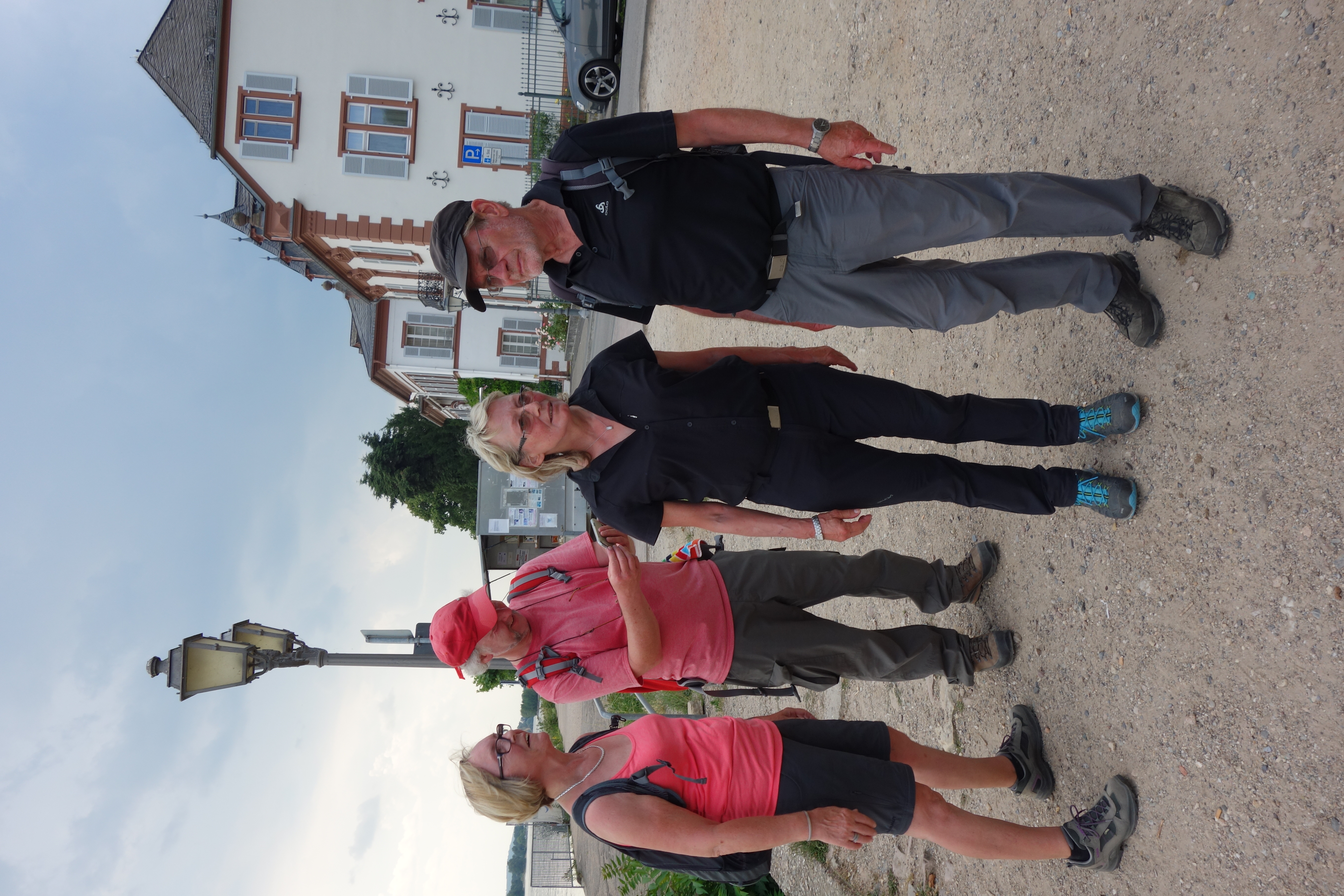 Am ersten Tag gingen wir in zwei Gruppen nach Eltville, zwei Gruppen deswegem, weil die zweite Gruppe erst einmal sich stärken musste. Was auch gelang, auch wenn ein einzelner Herr nur ein Wurdtbrit essen durfte. Danach trafen wir uns dann am Rhein in Eltville.