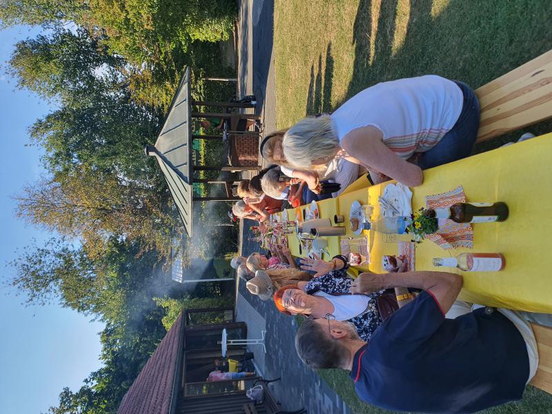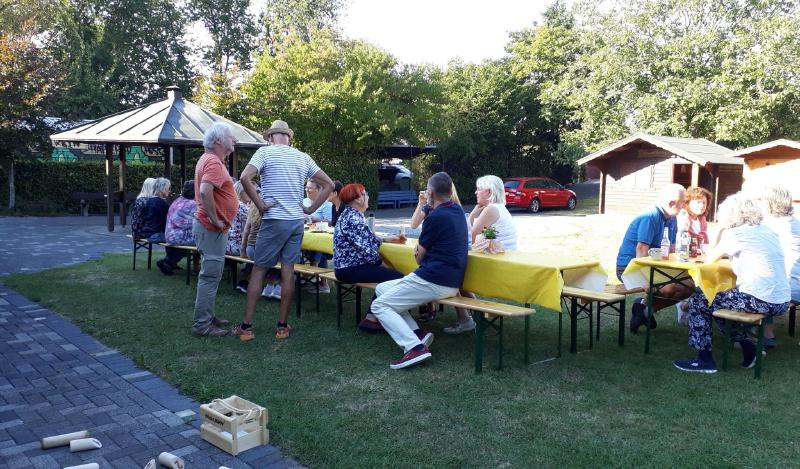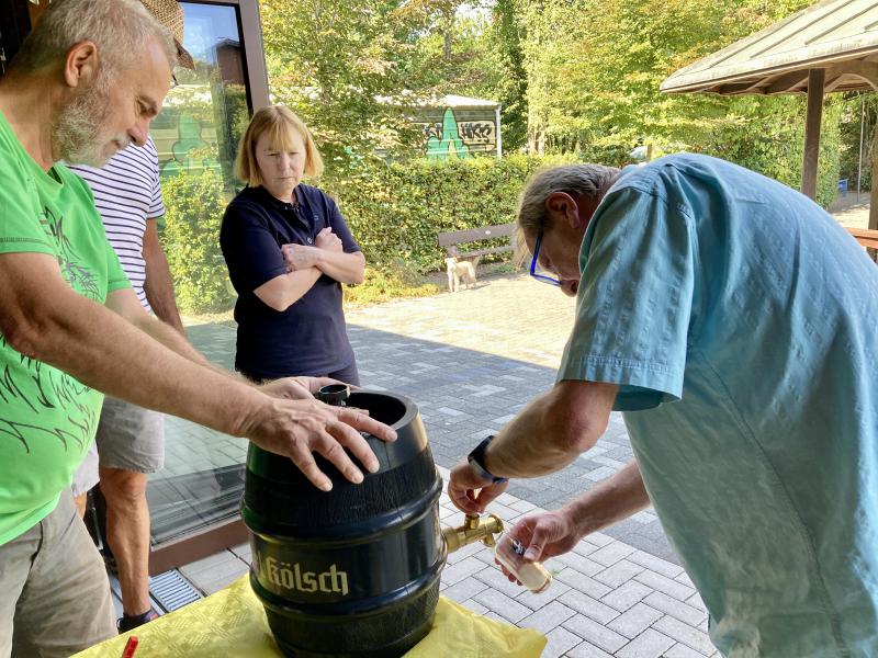 2. September, 15:30 Uhr: Die Teilnehmer des diesjährigen Sommerfestes trudeln auf dem Pützemichplatz ein……...und mit ihnen leckere Salate, Baguettes, Dips und Kräuterbutter, feinste Desserts und verschiedenste Kuchen. Altbewährt und professionell gaben Christoph und Wolfgang am Grill wieder alles, um uns mit bestens zubereitetem Grillgut zu versorgen. Zu Trinken hatten wir neben einer Bierfass-Spende von Brigitte so einiges, um bei schönstem Sommerwetter den Durst zu löschen. Schön, dass unsere neuen Mitglieder ebenso dabei waren, wie 3 süße Enkelkinder. Als dann kurz vor Schluss die Kühle langsam nach oben kroch, wurde es noch einmal besonders lustig.