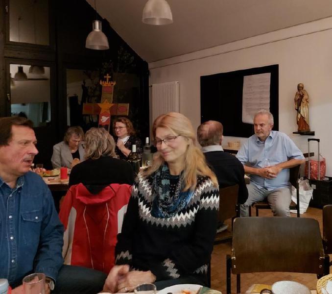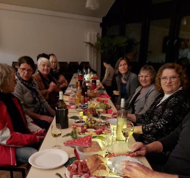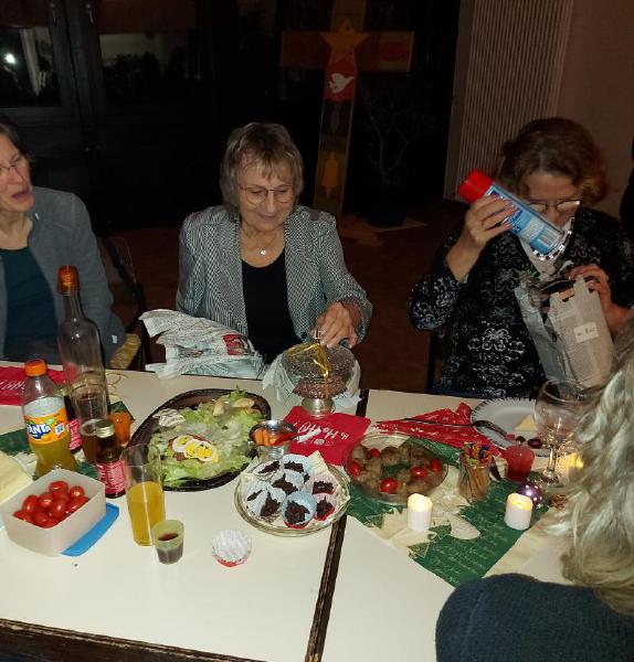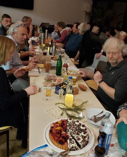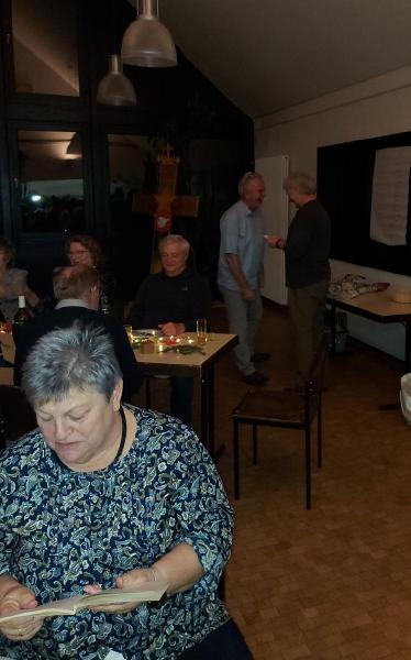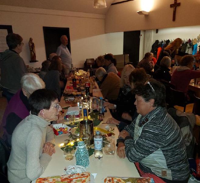 Mit Tannengrün, Lichterketten, Schalen mit Gebäck und Platten mit Herzhaftem verwandelte sich der Pfarrsaal in kürzester Zeit und es wurde richtig gemütlich. So stellte sich schnell eine schöne Adventsstimmung ein. So manch gutes Gespräch wurde geführt und alle waren froh, mal wieder zwanglos zusammen zu sitzen.