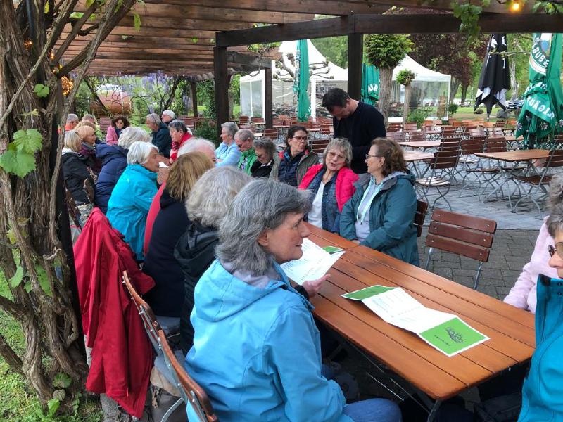 Dann konnten wir endlich einchecken. Wir waren mit dem Hotel sehr zufrieden, die Zimmer waren groß und sauber und auch mit dem "seitlichen" Moselblick konnten die meisten sehr zufrieden sein. Unsere "seitlicher Moselblick" war sogar ziemlich zentral. Danach gab es noch den zweiten Moselspaziergang Richtung Insel um die Lage zu peilen. Nun schien Weather-Man aber versagt zu haben, denn es wurde Zeit ins Hotel zurückzugehen, denn es fing an zu regnet. Aber wir erreichten das Hotel noch trockenen Fußes und genossen dann um 18:00 ein sehr gutes Abend-Buffet im Hotel Moselblick. Mittlerweile war es dann wieder trocken geworden und wir beschlossen, lokale Spezialitäten in flüssiger Form zu genießen und machten uns auf Richtung Moselinsel (15 min), wo wir direkt am Moselufer mit 20+ Personen an einer langen Tafel becherten. Trockenen Fußes erreichten wir dann später am Abend wieder das Hotel. Puuh, der erste Tag war dann Wettermäßig noch mal gutgegangen. Aber für den Donnerstag, wie sah es da aus .....