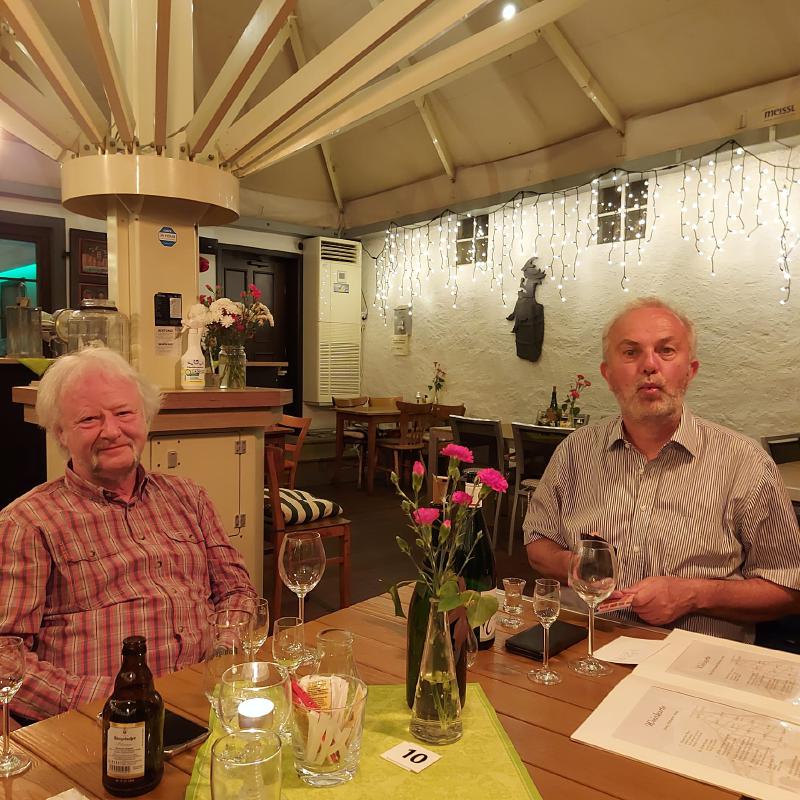 Wir machten uns dann gemeinsam auf ins Hotel, und .... Es fing an zu regnen. Gott sei Dank (Weather-Man sei Dank) erst nach der Wanderung. Nun regnete es ausgiebig, während wir das Abendessen genossen. Dann teilte sich die Gruppe auf, die einen blieben im Hotel (um lokale Spezialitäten in flüssiger Form zu genießen), Die anderen zogen durch das fechte Nass ins Dorf (um lokale Spezialitäten in flüssiger Form zu genießen). Also ein weiterer gelungener Abend.