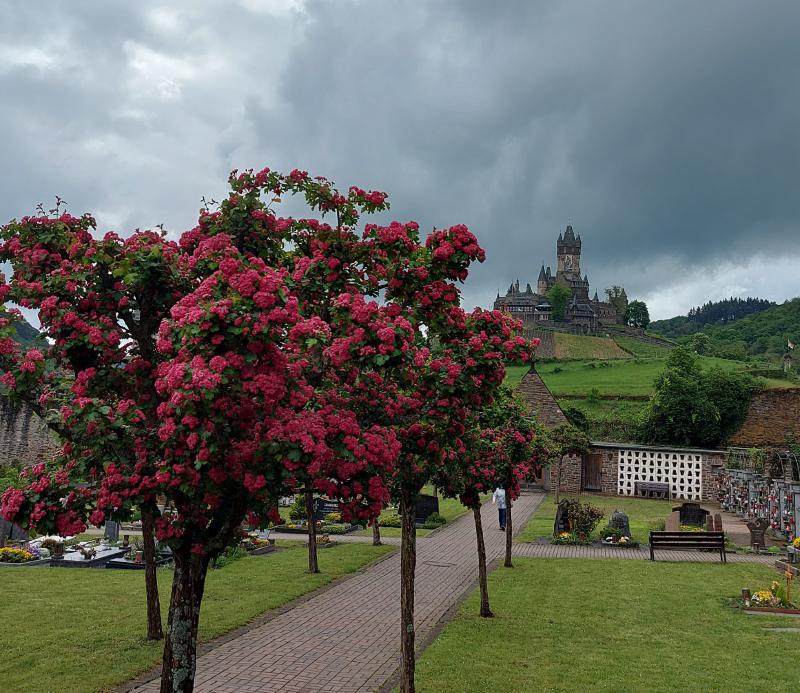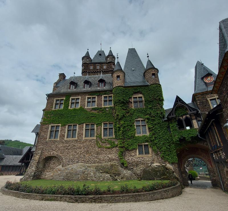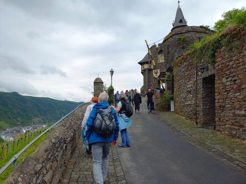 Am Freitag war Ausflugstag, das Wetter war ungewiss. Geplant waren Koblenz und Burg Eltz, es wurde dann Cochem und Burg Eltz. Ein Teil fuhr mit den PKWs nach Burg Eltz, der andere Teil mit PKWs und der DB nach Cochem. Das Wetter war bei der Abfahrt gut und je näher wir Richtung Cochem kamen, desto dunkler wurde es. Sollte Weather-Man doch versagen? Doch es hörte auf zu regnen und wir hatten in Cochem einige schöne Stunden. Wir gingen hinauf zur Reichsburg, ein Teil ließ sich durch die Geschichte führen, ein anderen Teil ließ sich durchs Kuchenbuffet auf der Burg führen. Das war lecker und überraschenderweise günstig.