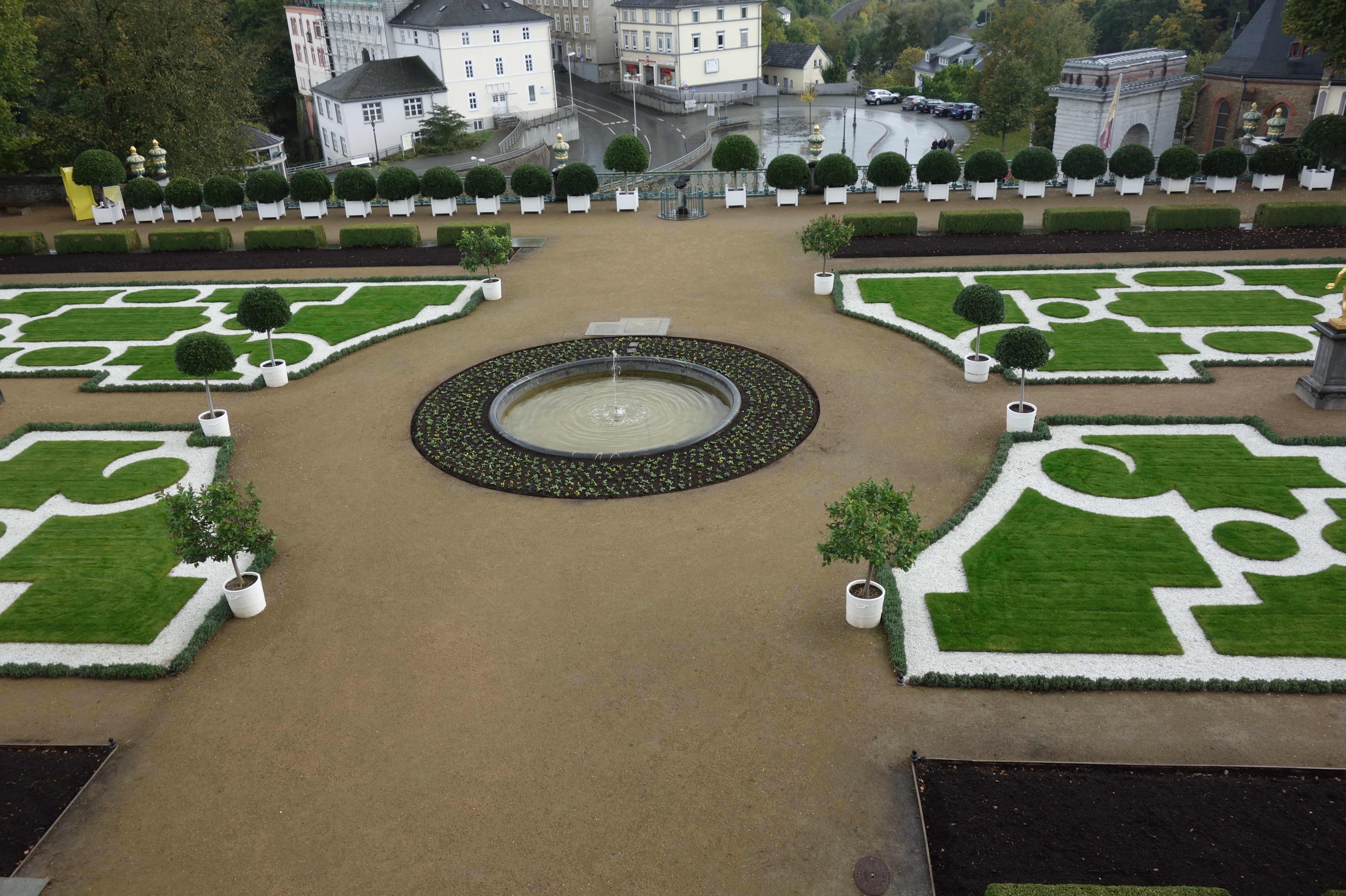 Eine weitere Augenweide ist der im Stile von Versailles angelegte Schlossgarten. Obwohl ihm der Herbst seine Farbenvielfalt schon genommen hatte, ist er dennoch beeindruckend und man kann erahnen, wie prächtig dieser im Frühling und Sommer erstrahlt. Von hier oben hatten wir einen tollen Überblick über die Stadt.