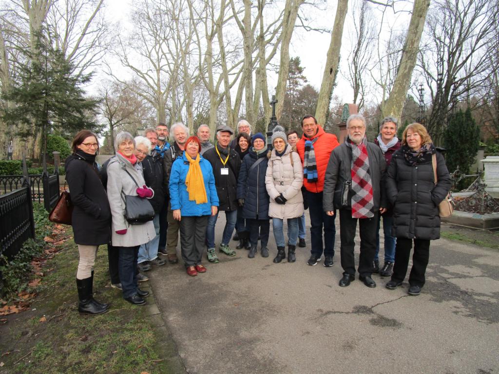 Vorbeigehend an den Gräbern mehr oder weniger Prominenter, an ausgefallenen Grabdenkmälern und über die MA (Mittelachse oder auch Millionärsallee) erfuhren wir allerlei Geschichten und Hintergründe. Michael gestaltete die Führung sehr interessant, konnte aber nicht verhindern, dass wir am Ende kalte Füße bekamen. Es ist halt Winter.