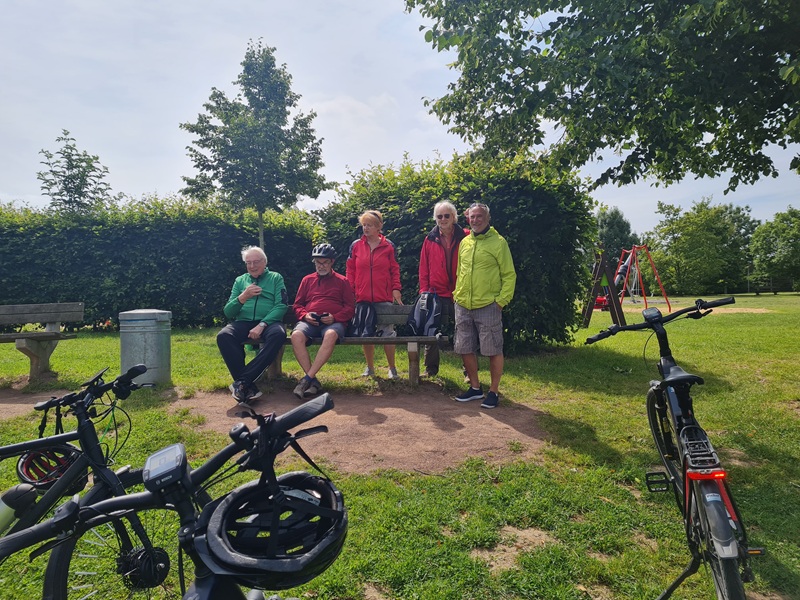 Am Hostmannsteg trafen sich auf Einladung von Peter 2 Radlerinnen und 4 Radler. Nach kurzer Absprache hieß es: "Auf zur Siegfähre".