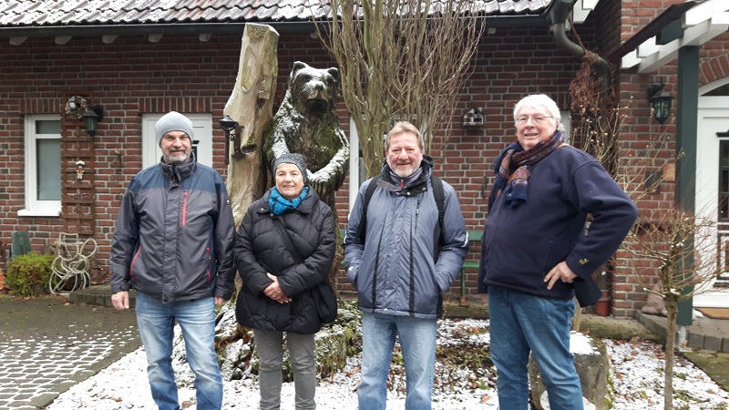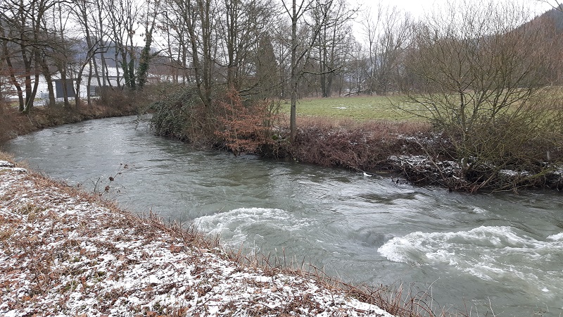 Vom Bahnhof in Hennef gingen wir an der Sieg entlang bis nach Müschmühle. Dort bogen wir ab und wanderten den Brölbach an seinem linken Ufer flussaufwärts. Überraschenderweise mussten wir eine kleine Steigung bewältigen, bevor wir über die Straßenbrücke in den Ortskern von Bröl kamen. In der einzigen Gaststätte von Bröl haben wir uns bei Essen und Kaffee aufgewärmt. Dann ging es zurück, wobei wir diesmal das rechte Brölufer wählten. Unterwegs setzte Schneefall ein, so dass die winterliche Stimmung noch intensiver wurde.