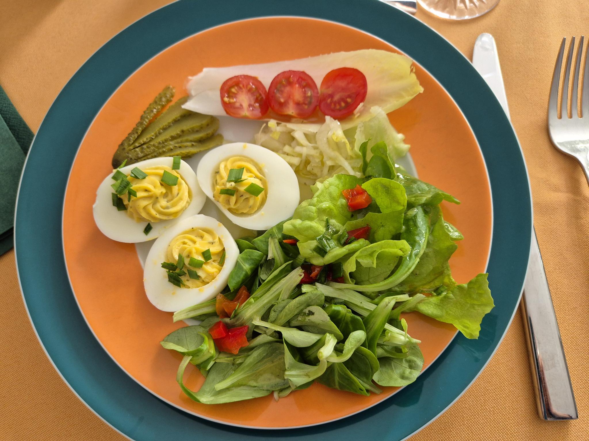 - Russisch-Ei mit Salat-Bouquet.