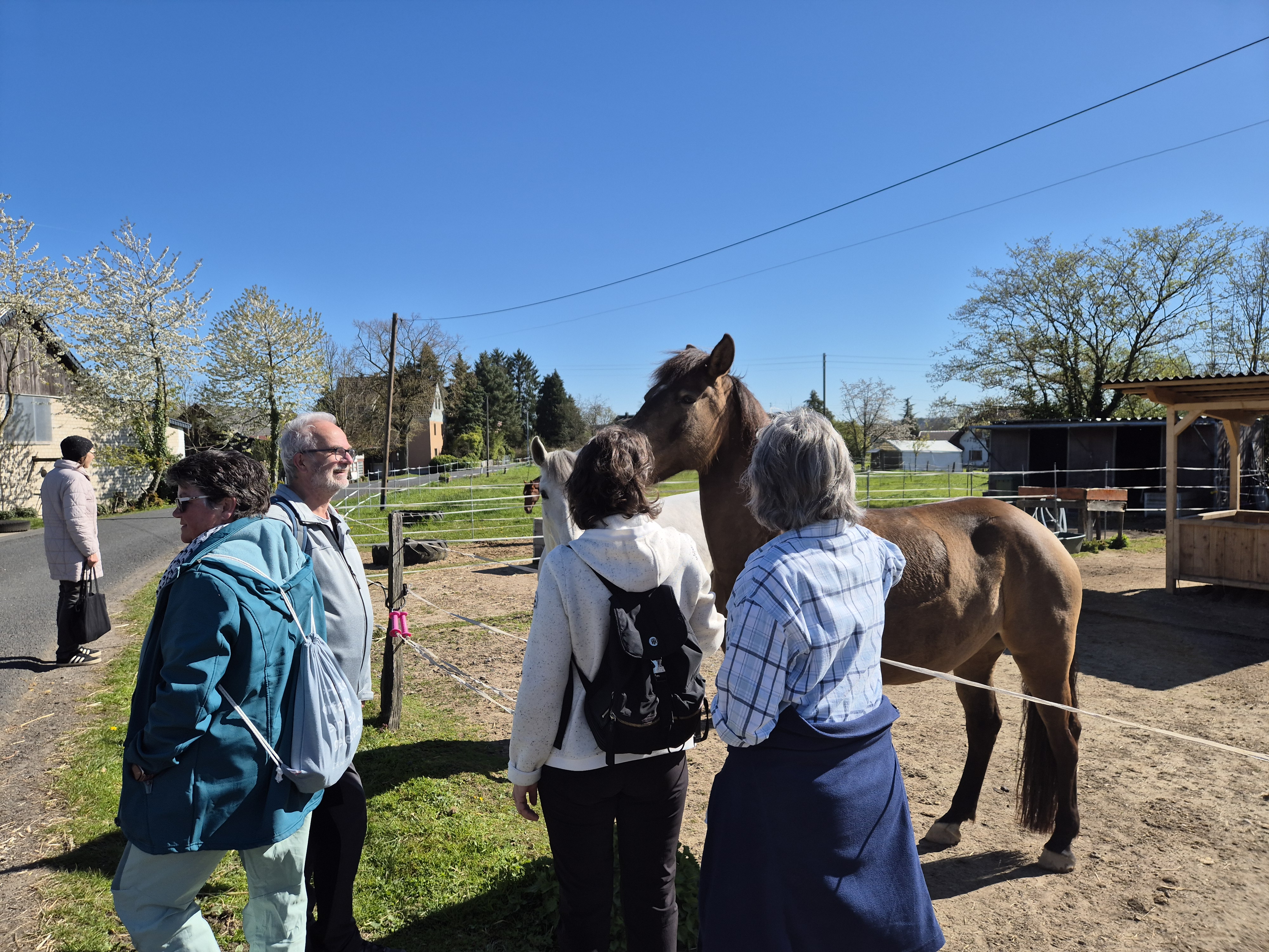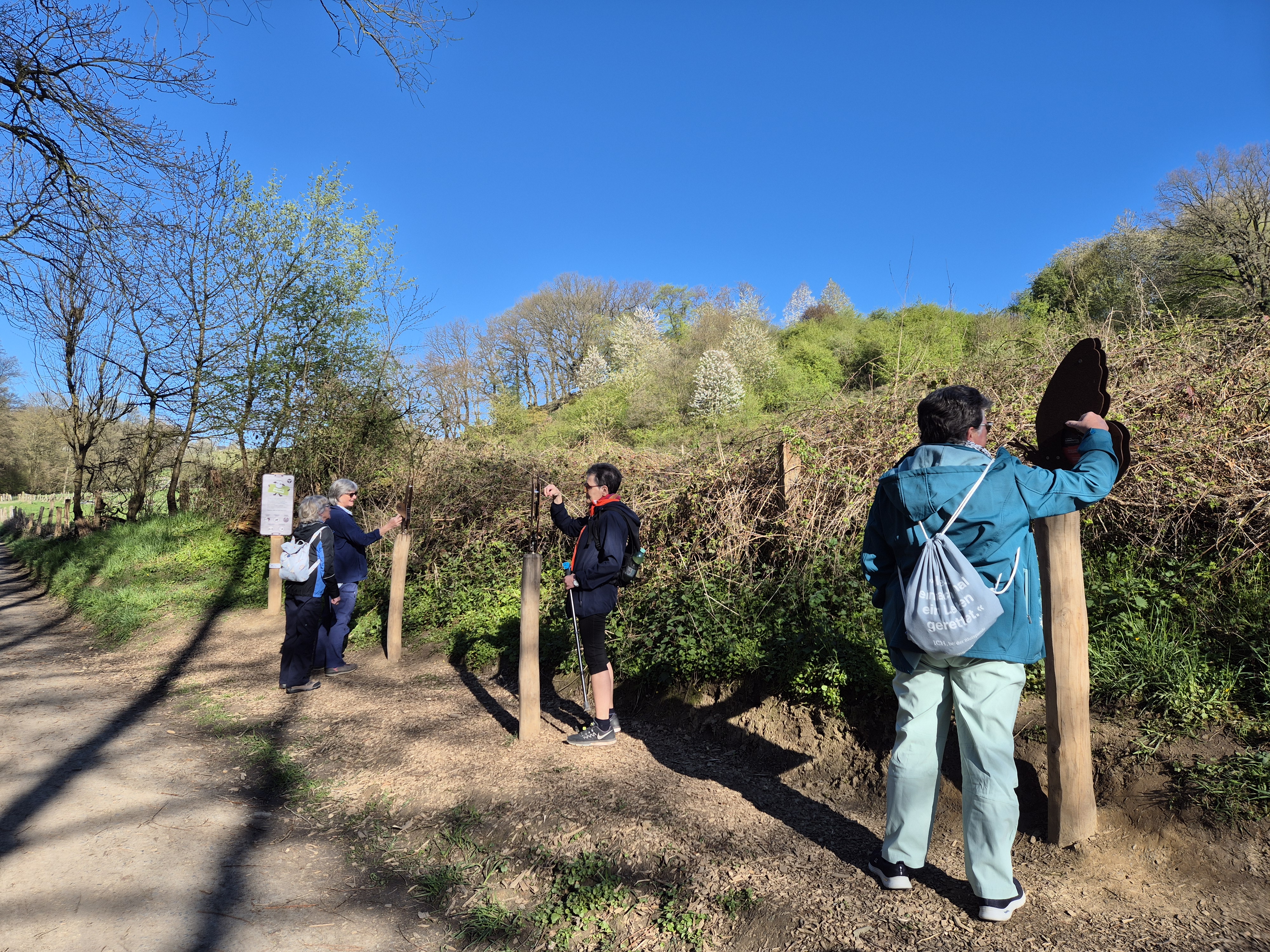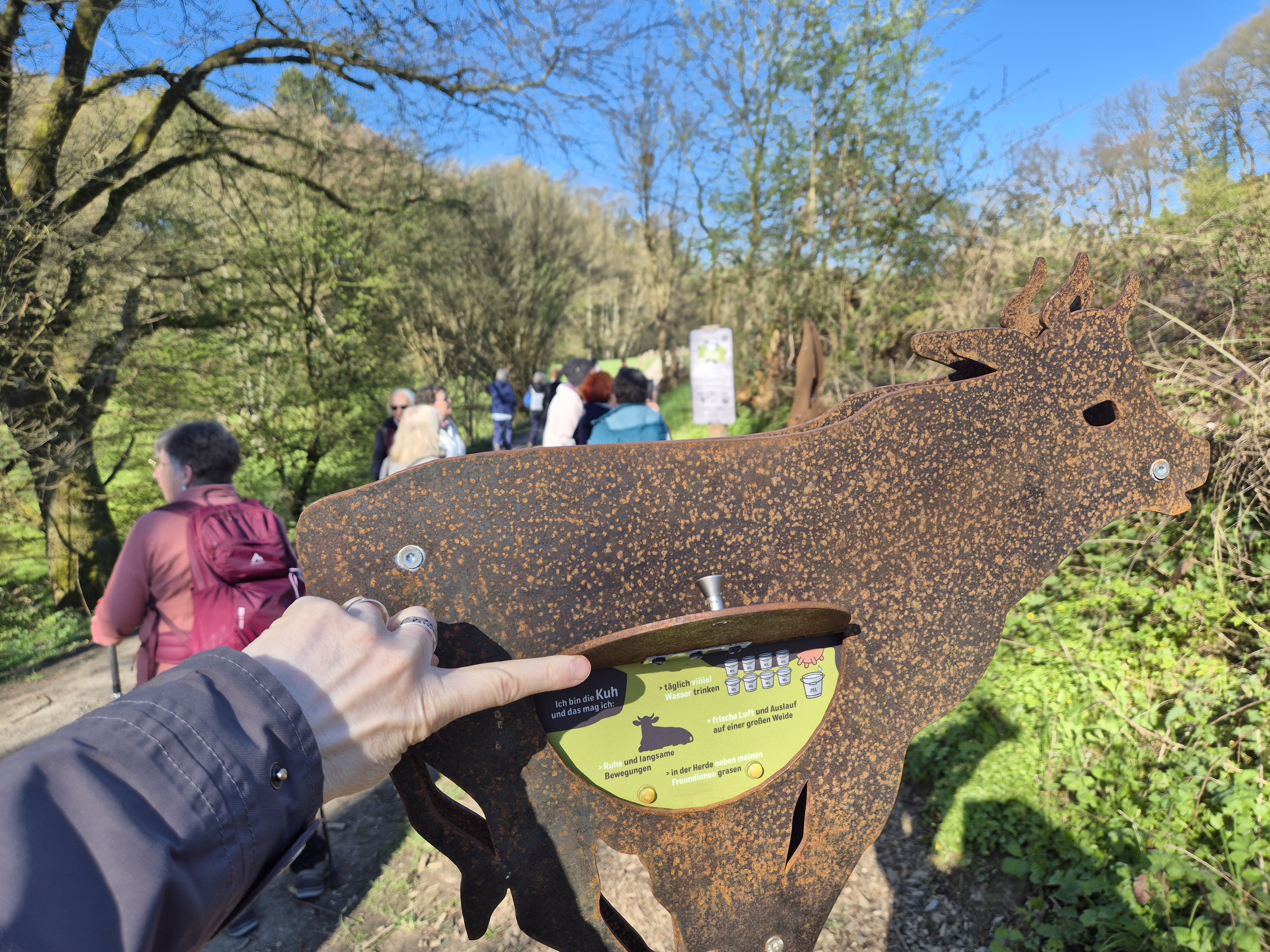 Heute, am 08.04.2026, haben wir uns um 9.30 Uhr gut gelaunt und voller Vorfreude auf eine schöne Wanderung am Gasthof "Em Wingert" getroffen. Mit der Sonne am Himmel und im Herzen sind wir fröhlich durch die wunderschöne Frühlingsnatur auf dem Familienwanderweg Muh&Mäh unterwegs gewesen. Die Hinweistafeln und etappenweise eingerichteten interaktiven Stationen waren informativ und lustig. Von den beschriebenen Tieren sahen wir nur Schafe, dazu Frauke: "Ah, Pulloverschweine" 😄😄😄. Wir haben viel gelacht und hatten mächtig Spaß miteinander.