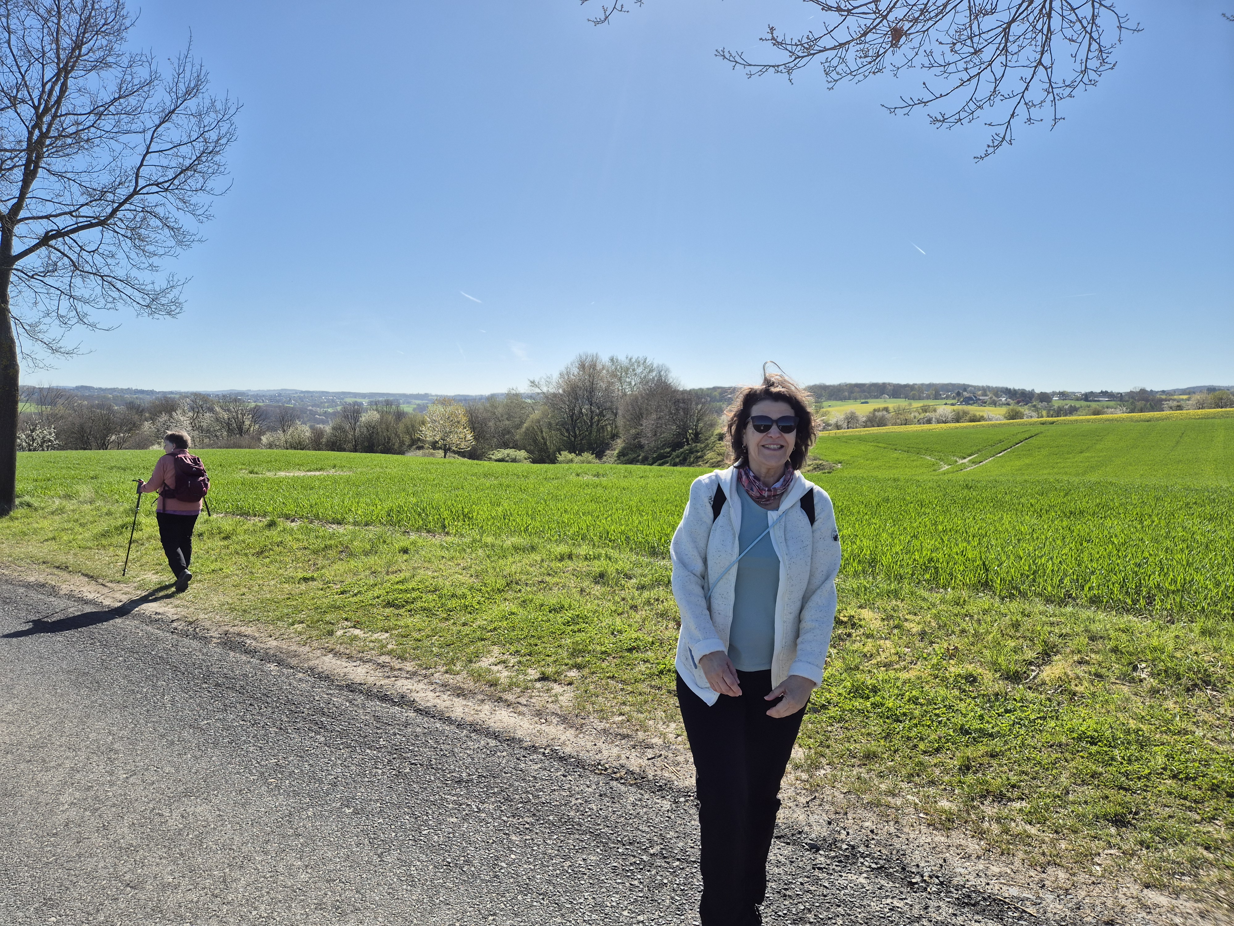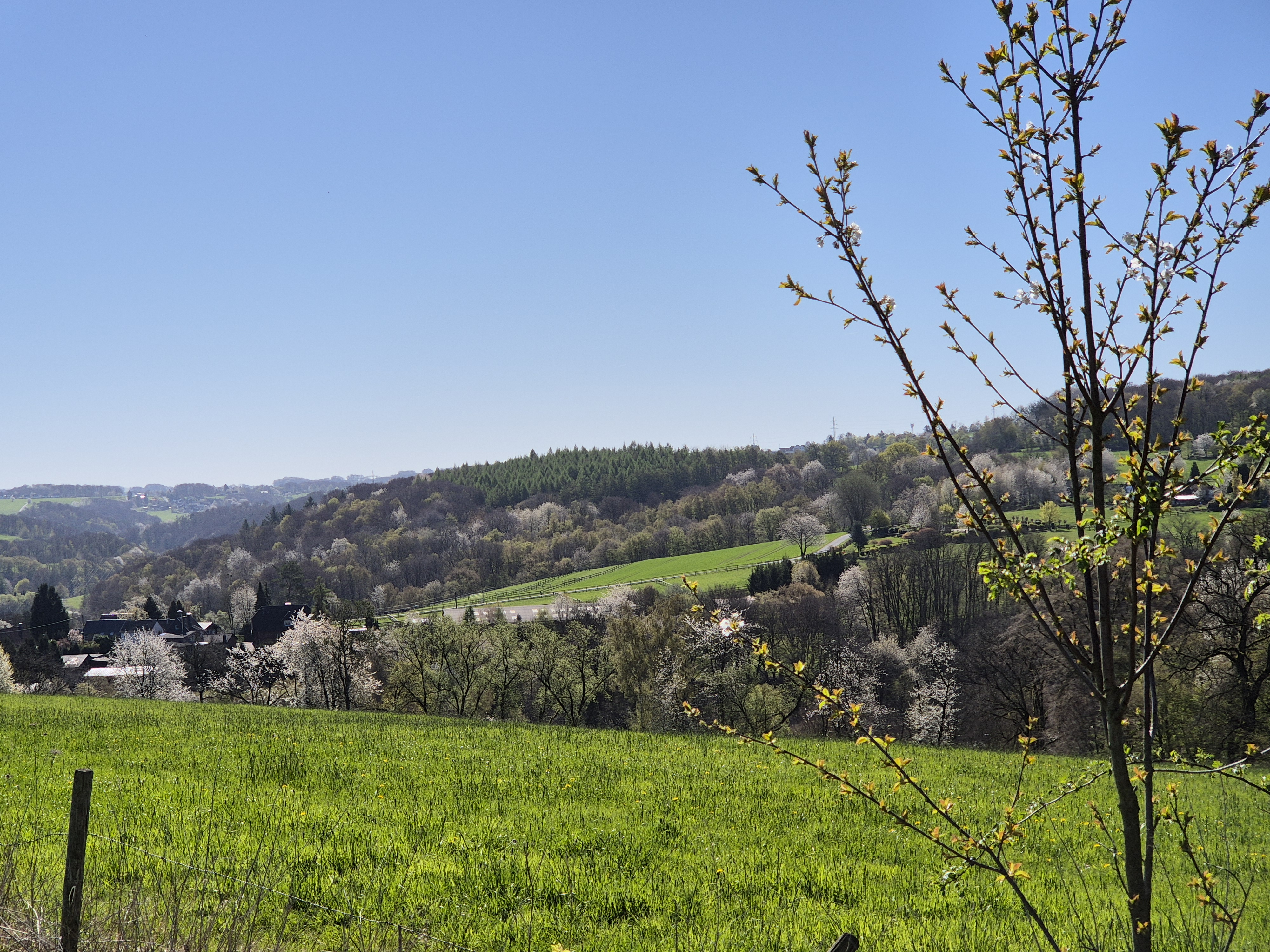 Dafür wurden wir mit tollen Ausblicken über die Höhen belohnt. Einige Bäume und Blumen blühten und ergaben mit den weiten Wiesen und Hügeln im Sonnenlicht ein wunderschönes Bild.