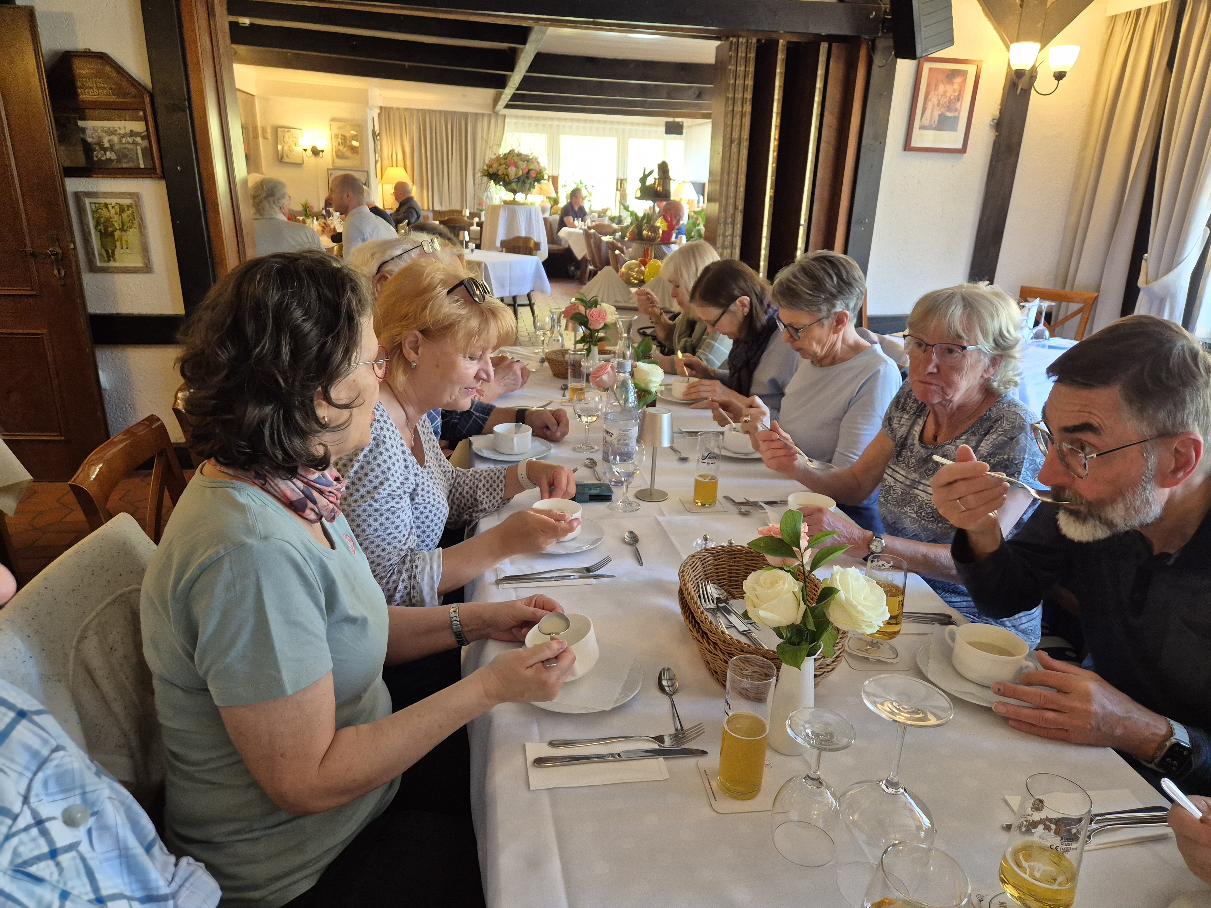 In Hofen entschieden sich alle für die Maxirunde, da es nur noch bergab ging, rein topografisch gesehen natürlich 😄. Der Rest des Weges, hinter Hofen rechts in den Wirtschaftsweg, bescherte uns nocheinmal wunderbare Blicke über die Höhen und die grünen Felder mit blühenden Bäumen. Dann ging es herunter nach Lanzenbach und im Gasthof angekommen, freuten wir uns über erfrischende Getränke und ein sehr leckeres Essen.
